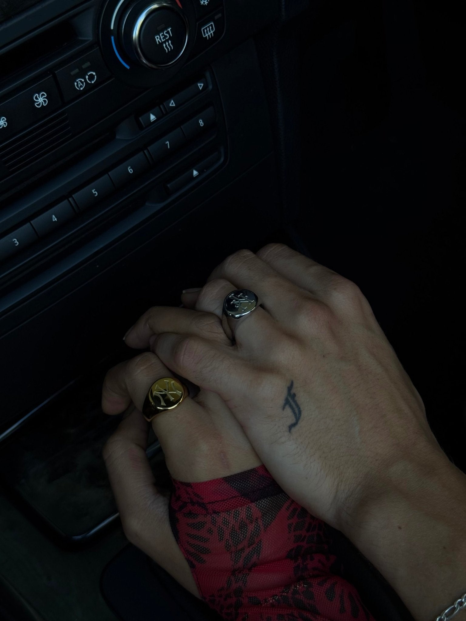 Unisexe et conçue pour durer, cette bague est disponible en tailles 7 à 9 et est fabriquée en plaqué or 18 carats résistant, aussi brillant que l'or 24 carats vintage. Résistante à l'eau et au ternissement, elle est tout simplement emblématique : conçue pour être portée sans modération.