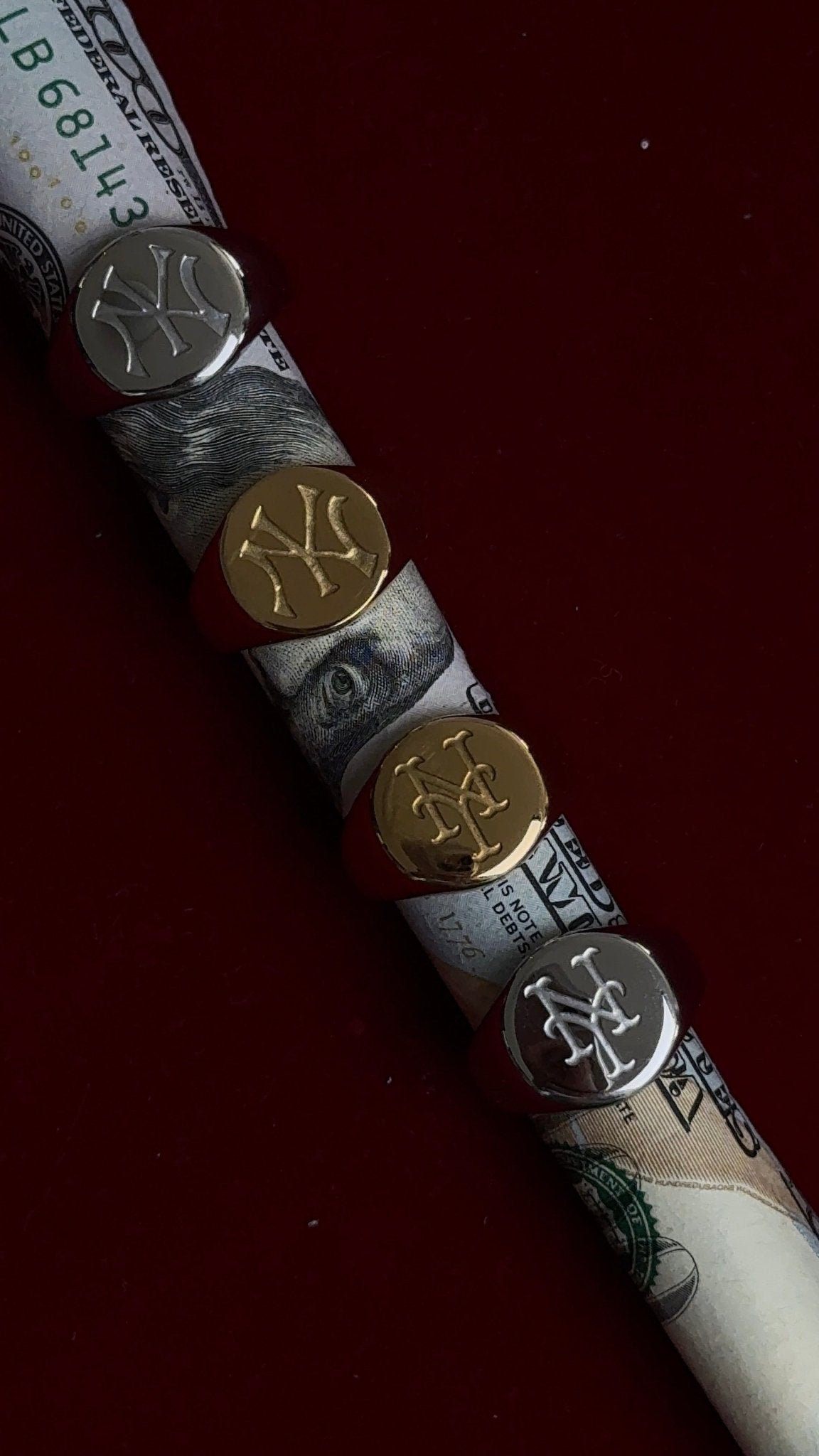 Découvrez notre troisième modèle de bague personnalisée, inspiré de notre collier Yankee, sept fois épuisé. Découvrez la bague Round Crest des Mets de New York : la pièce qui sublimera votre look.