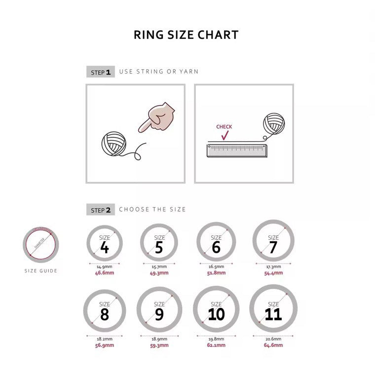 Si vous ne connaissez pas du tout votre taille de bague, veuillez visiter http://findmyringsize.com et vous pourrez découvrir quelle taille de bague vous portez déjà, ou vous pouvez la mesurer vous-même en utilisant le guide ci-dessous