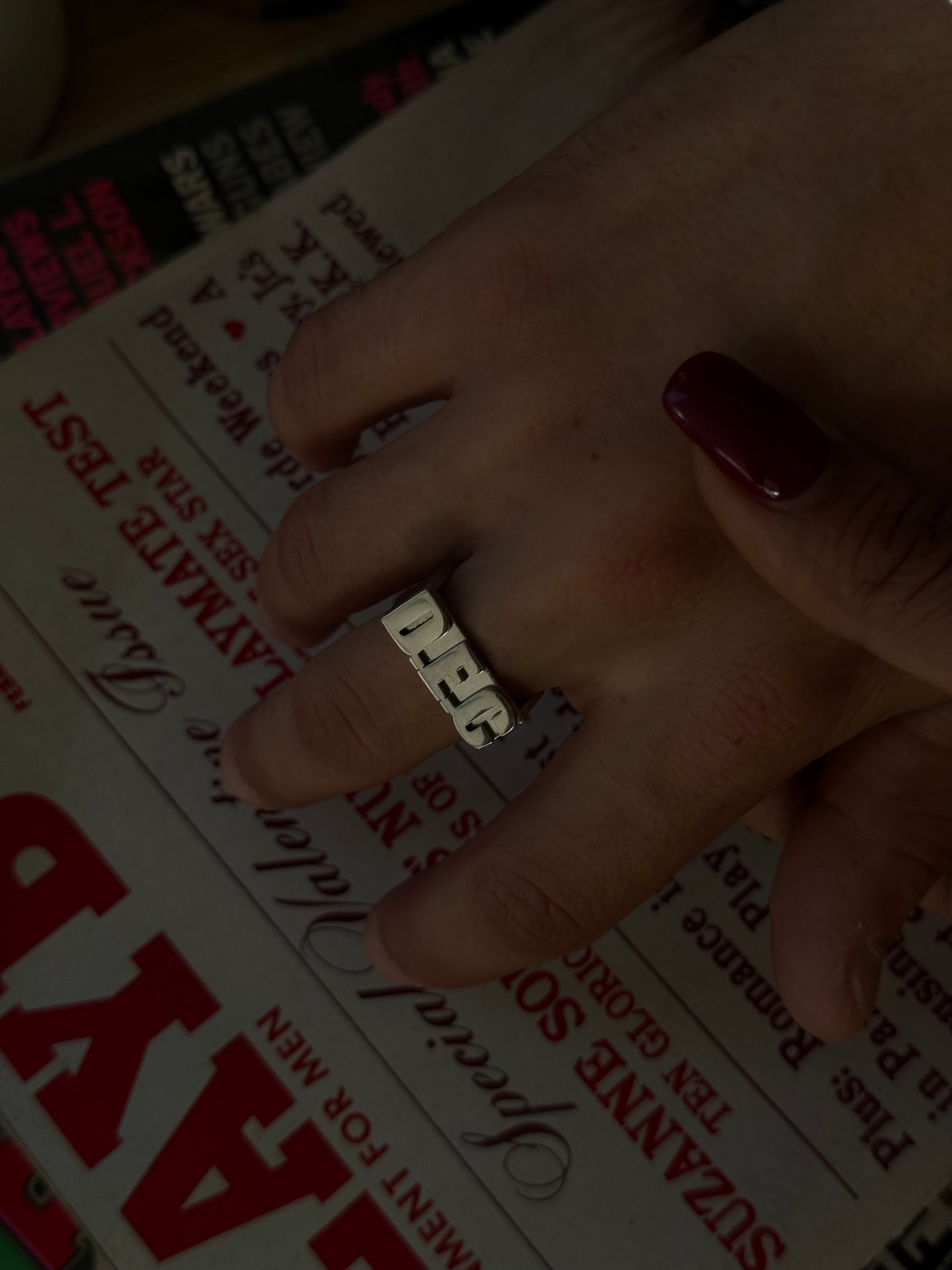 Il s’agit de bien plus qu’un simple bijou : c’est une bague personnalisée qui transforme votre nom (ou votre mot préféré) en un accessoire audacieux que vous ne voudrez plus jamais enlever.
