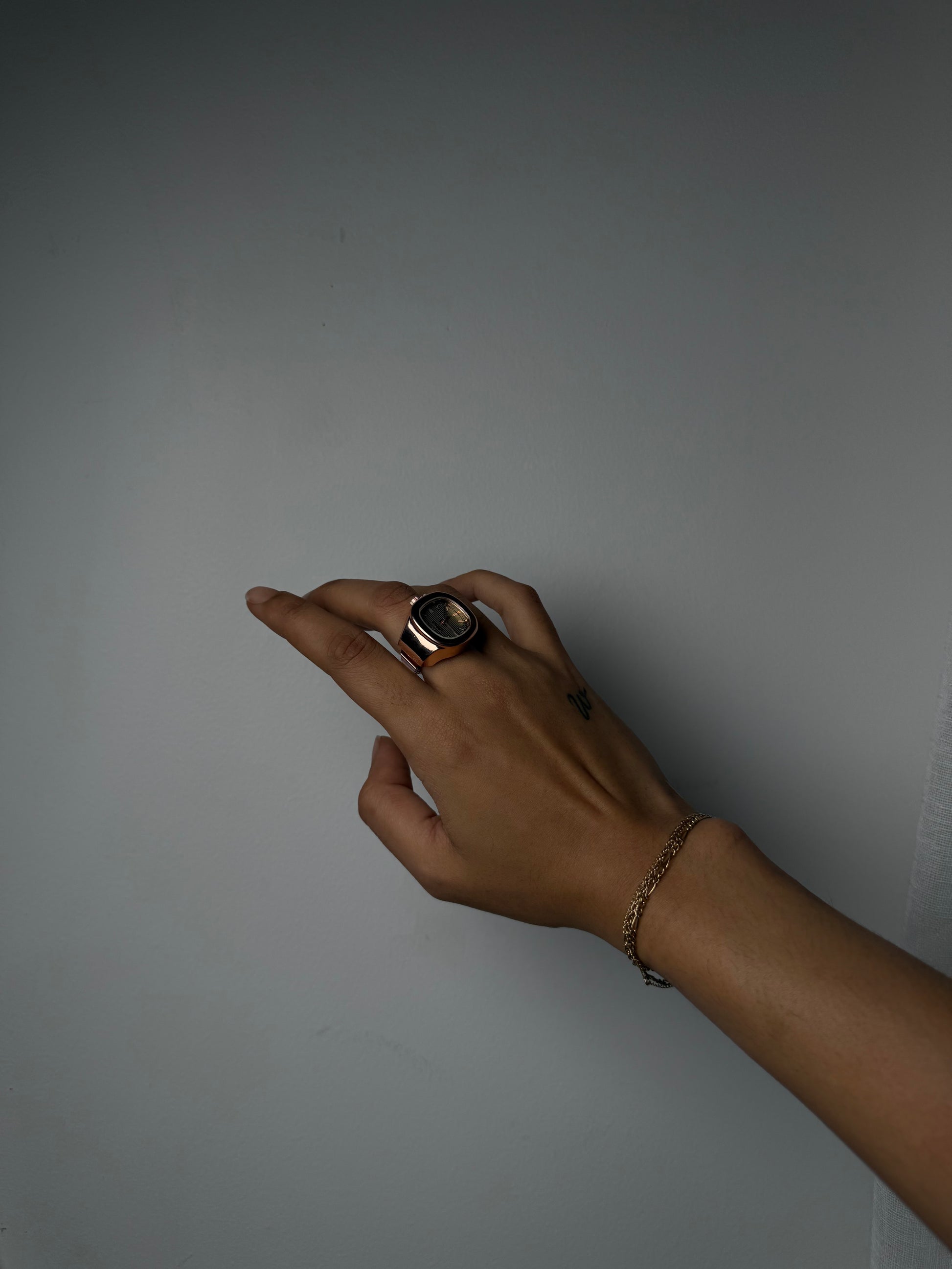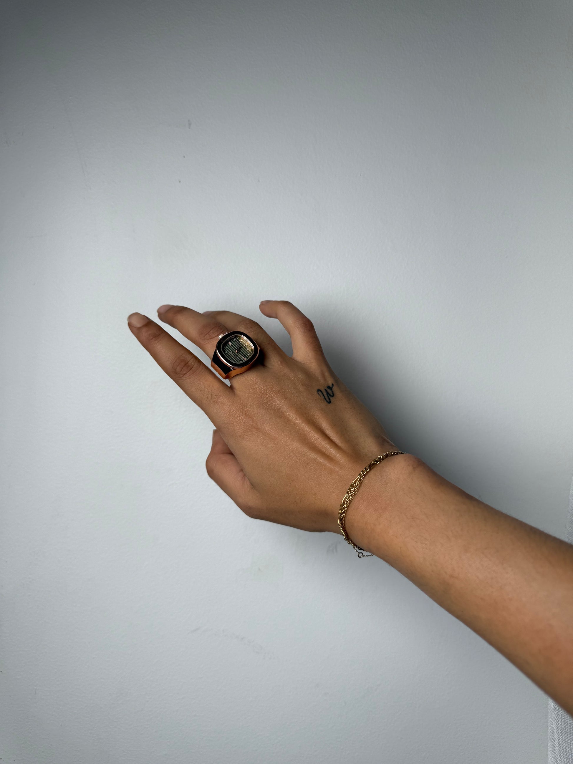 時代を超えたスタイル、モダンなエッジ。ボッテガ ウォッチ リングは、洗練されたスクエアフェイスと洗練されたディテールが、気取らない洗練された雰囲気を醸し出す、時計を身に着けるアートへと昇華させます。
