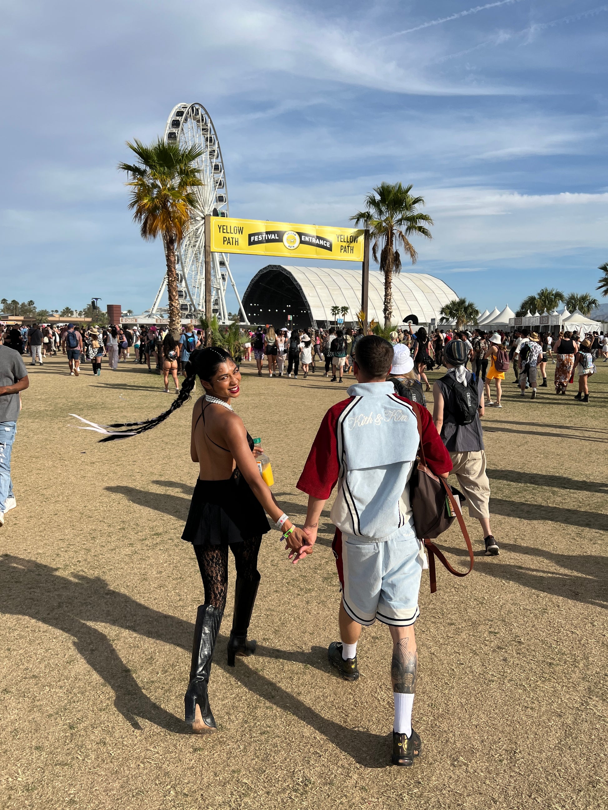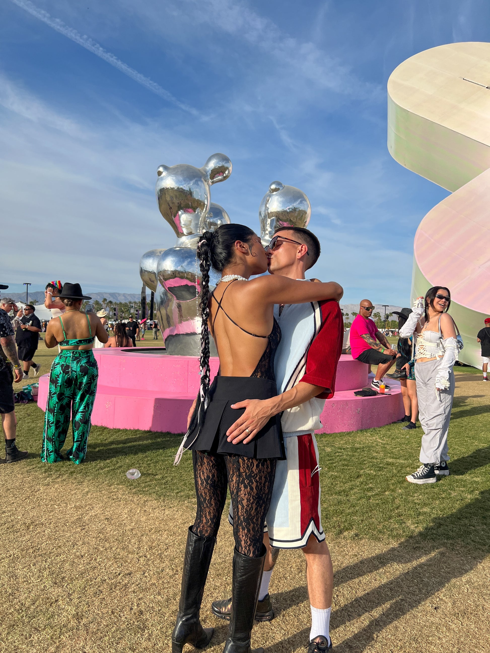 - フィッシュネットメッシュのディテールが施されたワイドプリーツ