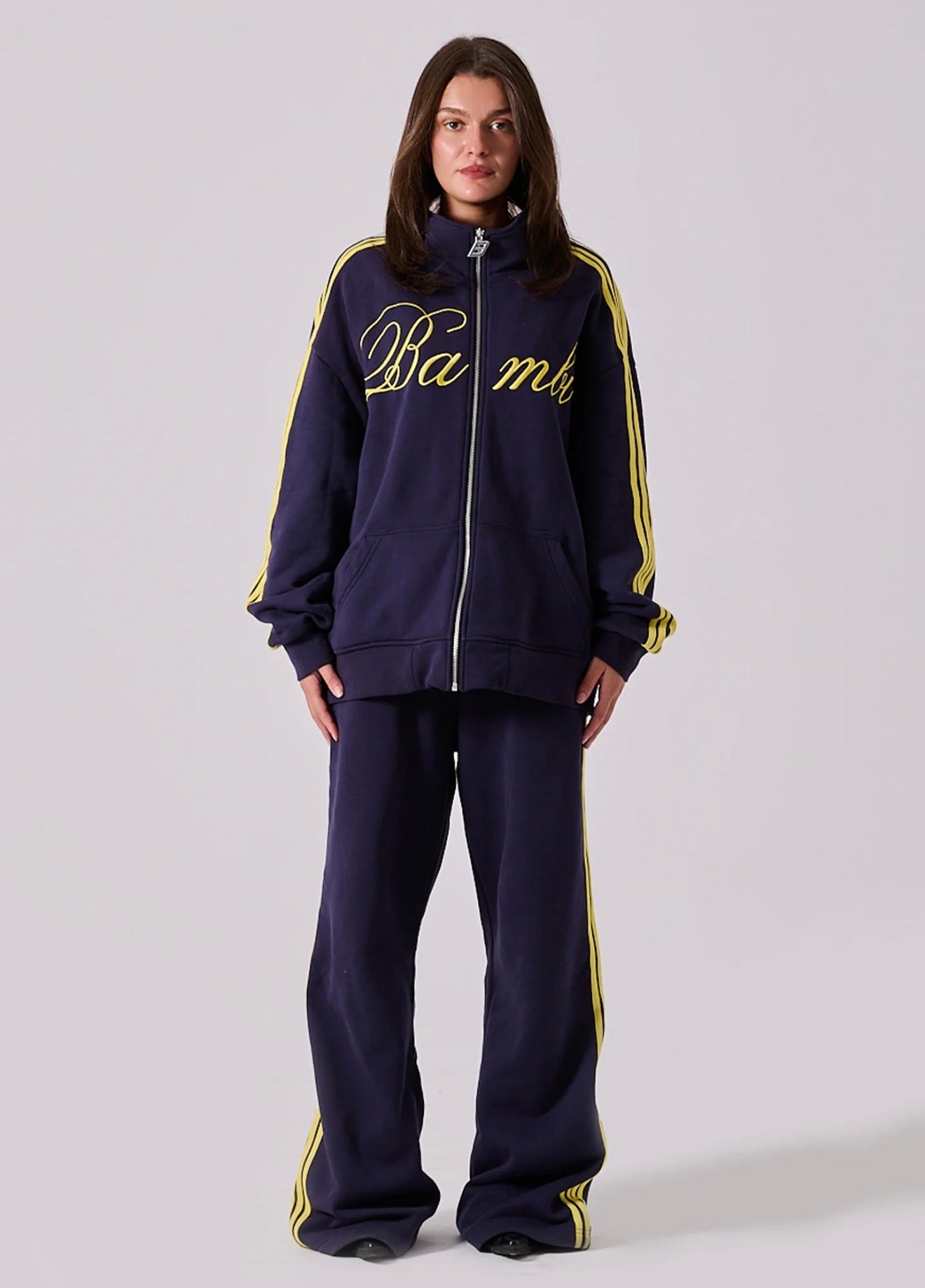 The Spears Zip features a high neckline, thick ribbed waistband and cuffs, and a relaxed oversized fit designed to flatter with ease. Finished with deep pockets and a premium YKK metal zipper with a custom B puller, this piece is a refined evolution of a Bye Bambi staple.