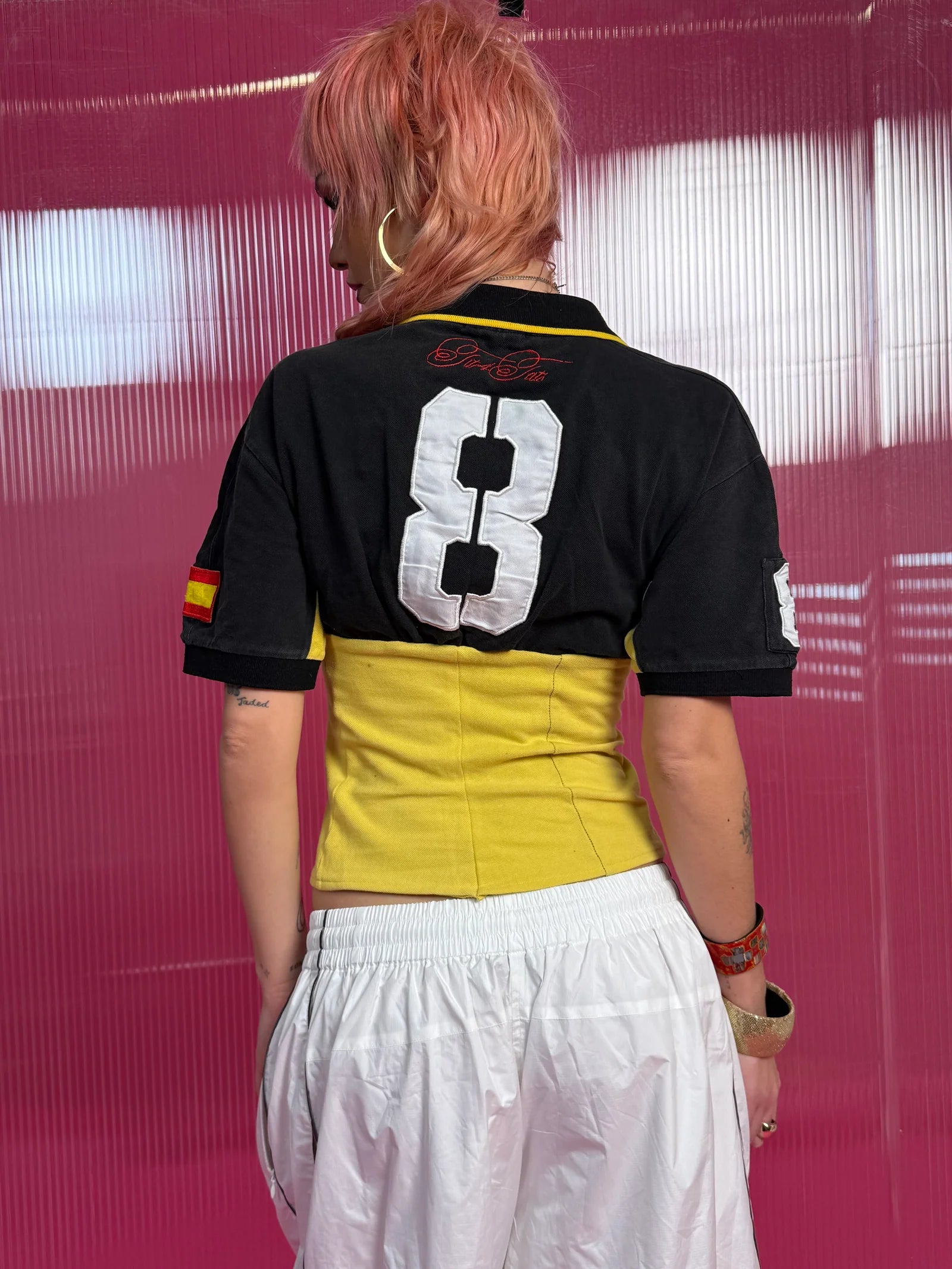 1 of 1 reworked handmade TIT4TATS polo shirt. Each polo is completely unique
