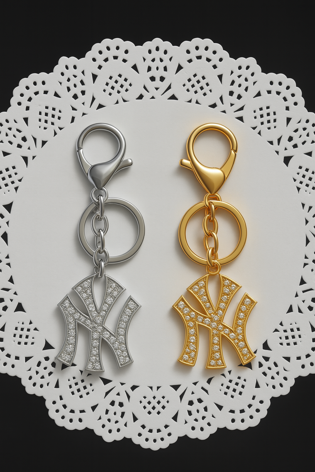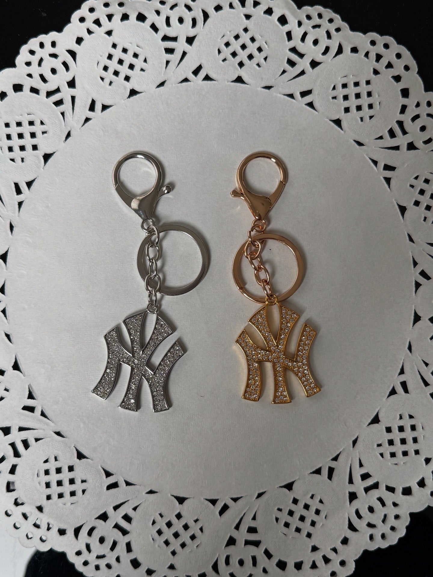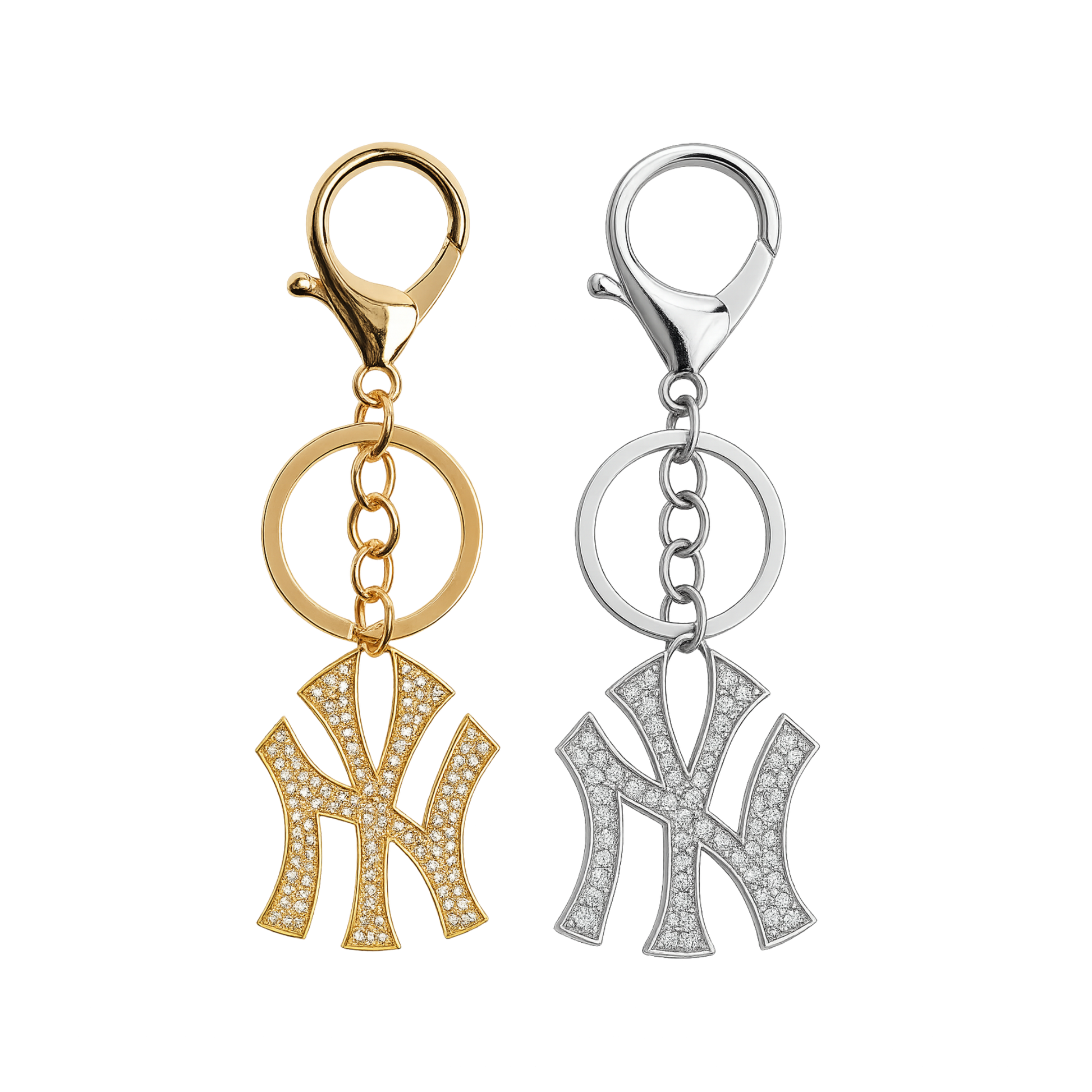 ヤンキーキーチェーン&バッグチャームは、キーやバッグに映える究極のステートメントピース。きらめくクリスタルをちりばめたNYロゴが、周りの視線を釘付けにします。お気に入りのハンドバッグにクリップで留めたり、普段使いのキーホルダーに付け替えたりと、どんなスタイルにもさりげなくストリート感とラグジュアリー感をプラスします。
