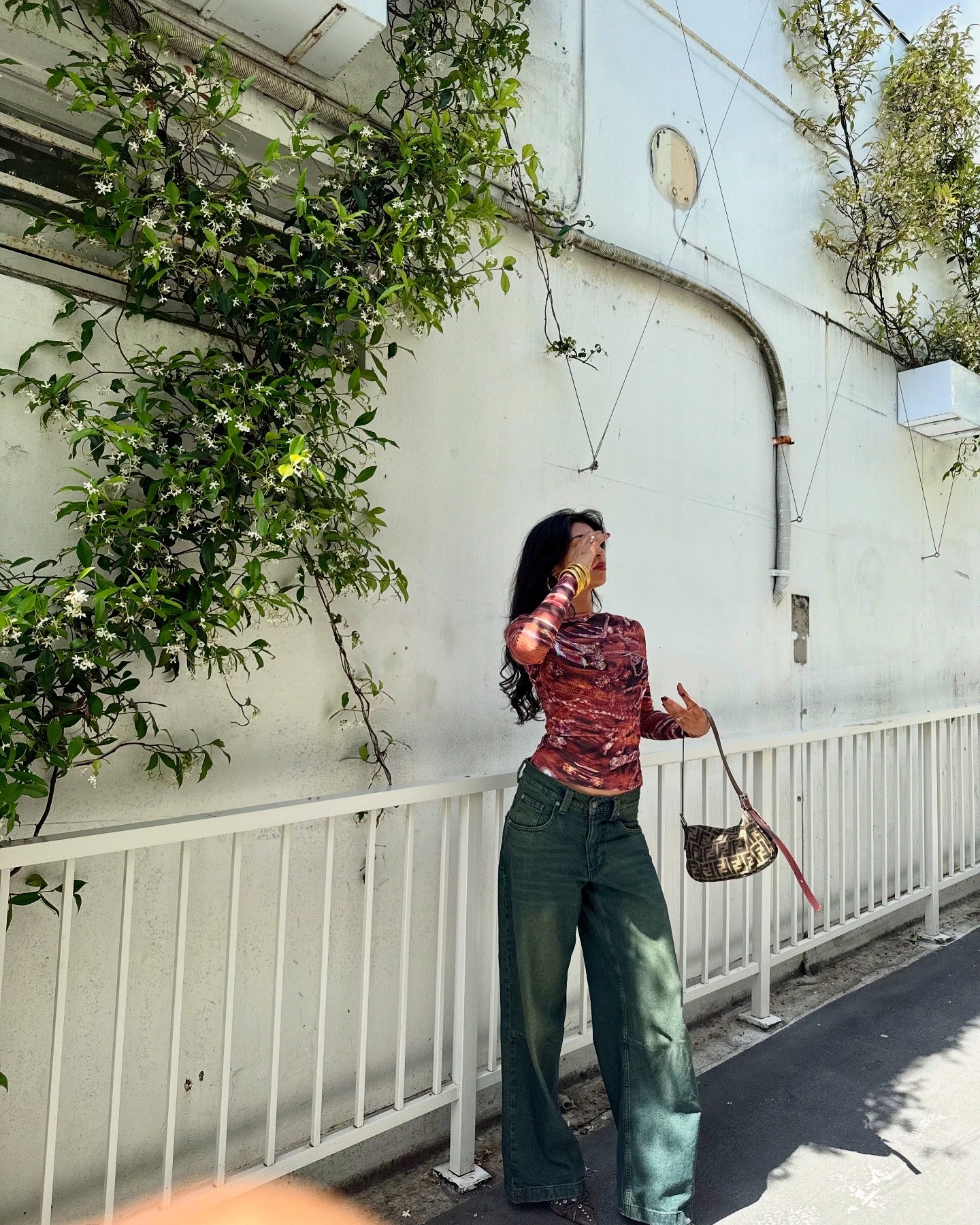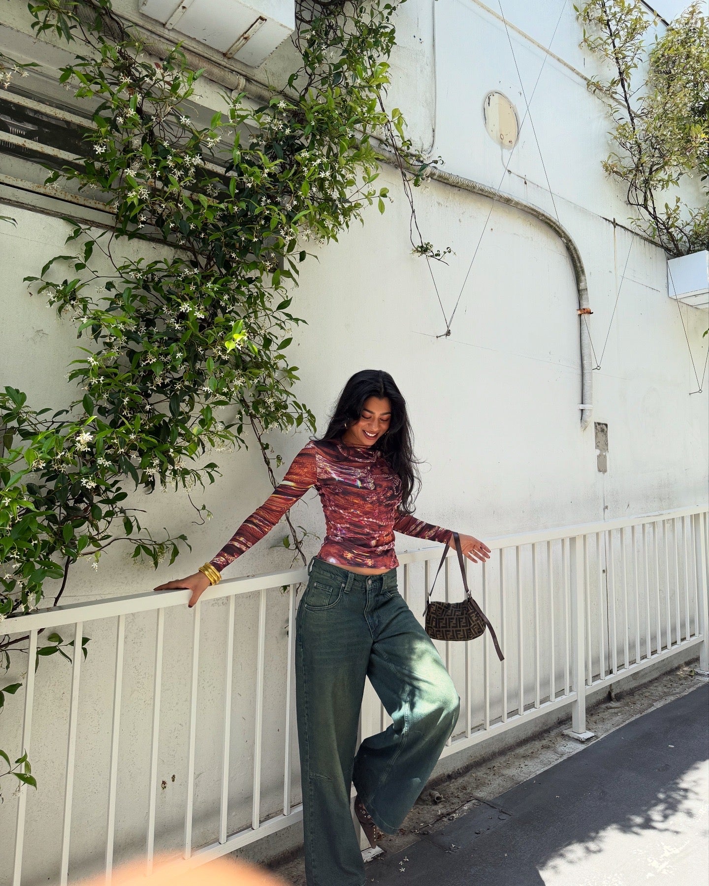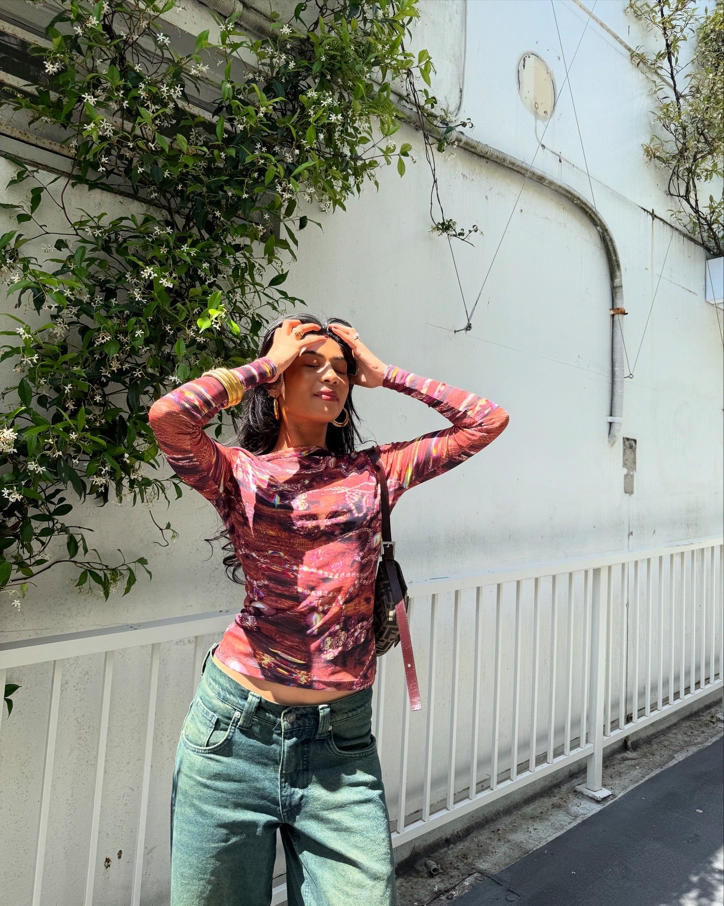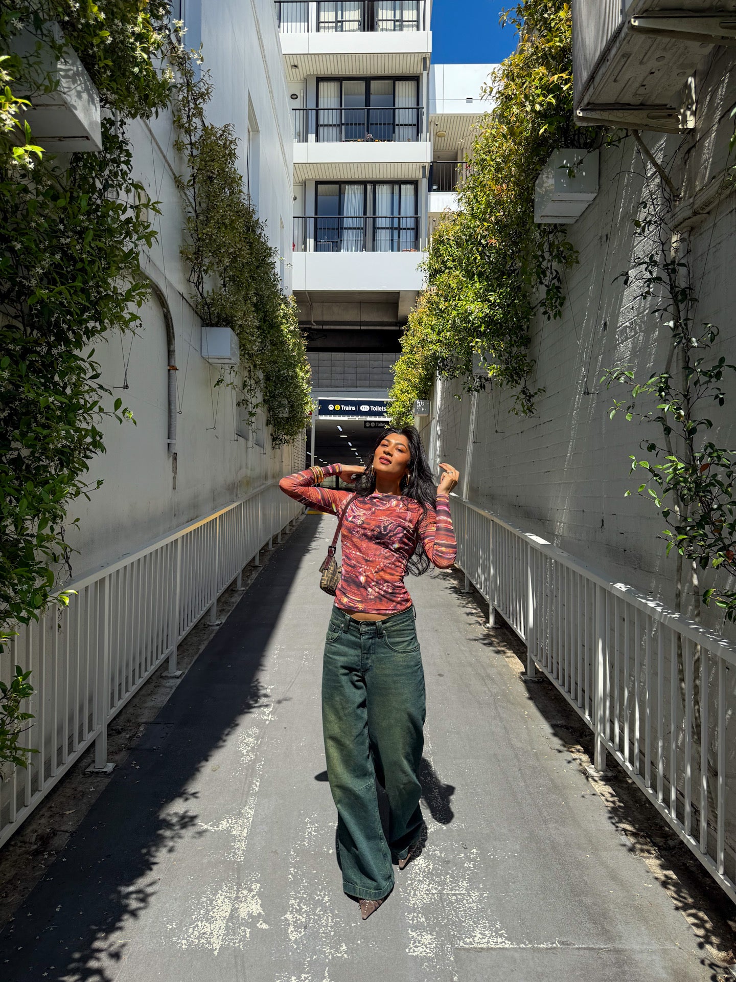 Made by Australian Designer Lucinda Babi ⭐️ Long sleeve fitted top in the all new ‘adorn’ print, in a beautiful semi-sheer stretch mesh (fabric printed in Melbourne).