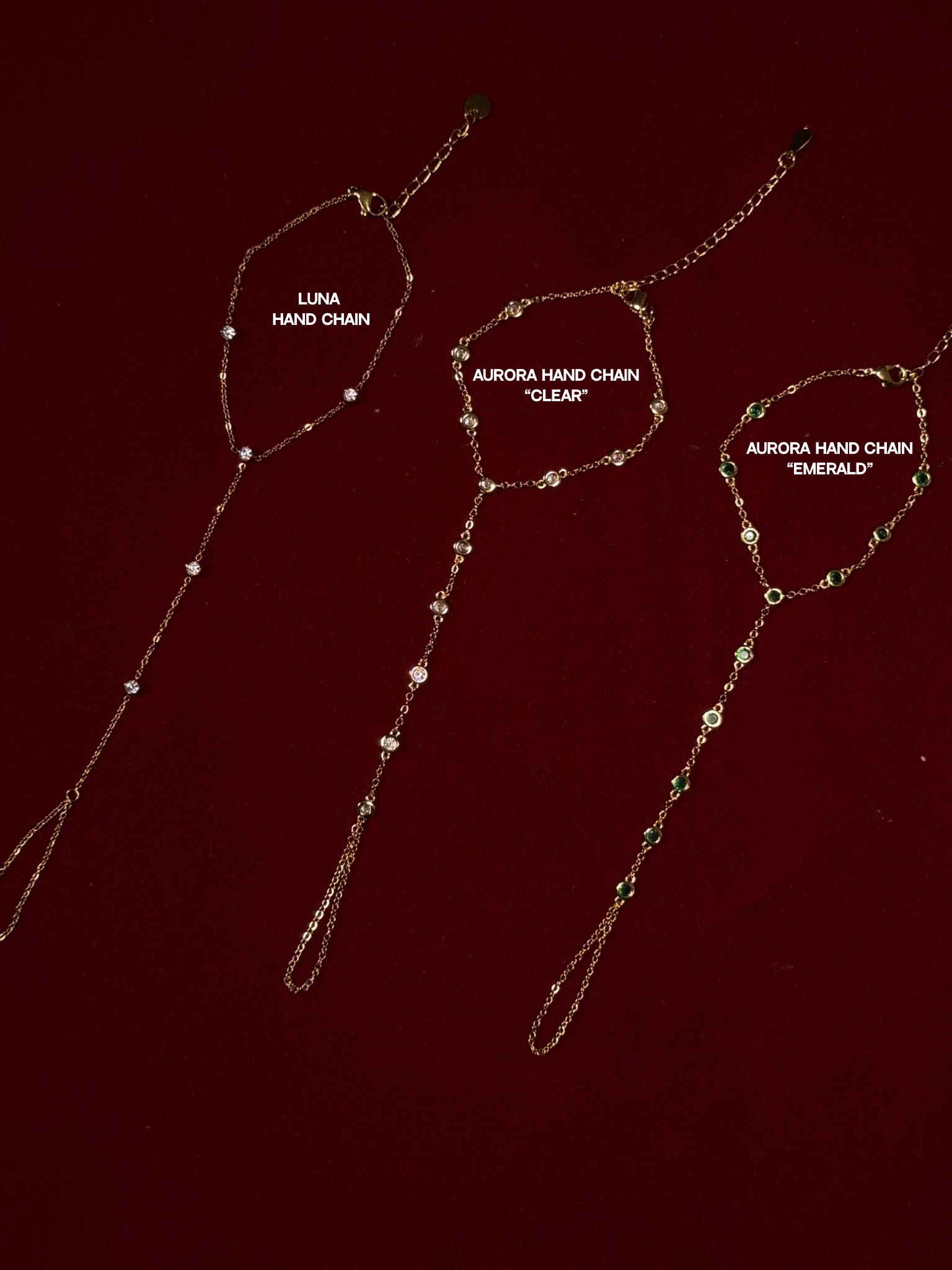 Aurora Hand Chains - Clear/Emerald/Blue/Silver