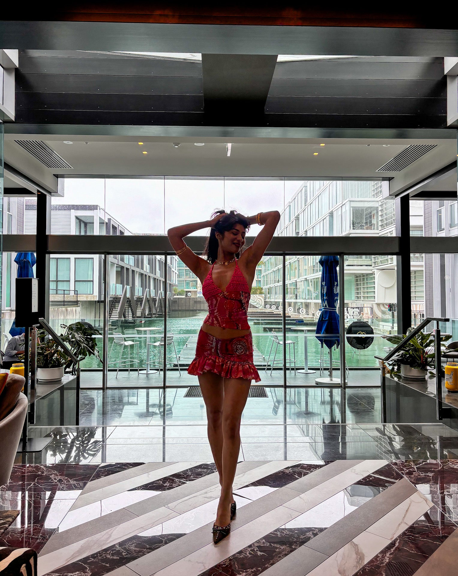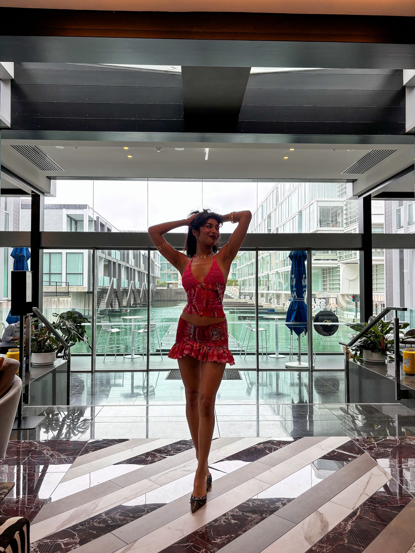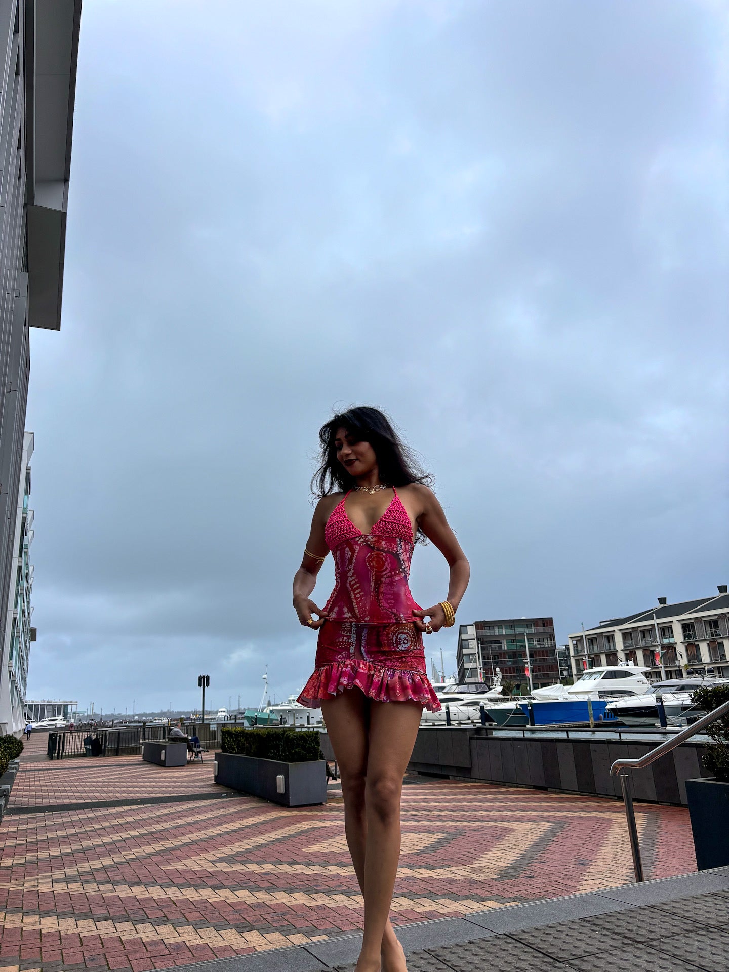 The Asymmetric Rara Co-ord in Pink Celtic Batik Print by ELLA MIA! This viral set has sold out THREE TIMES, handmade in the UK & made consciously so you know you’l be the only one in the room wearing this set! It offers a highly flattering and versatile silhouette. Made from luxurious fitted satin fabric with a unique, custom pink Celtic print, this co-ord set hugs you in all the right places and exudes elegance and sophistication✨ The skirt and crochet top can also be hired individually for even more styling options