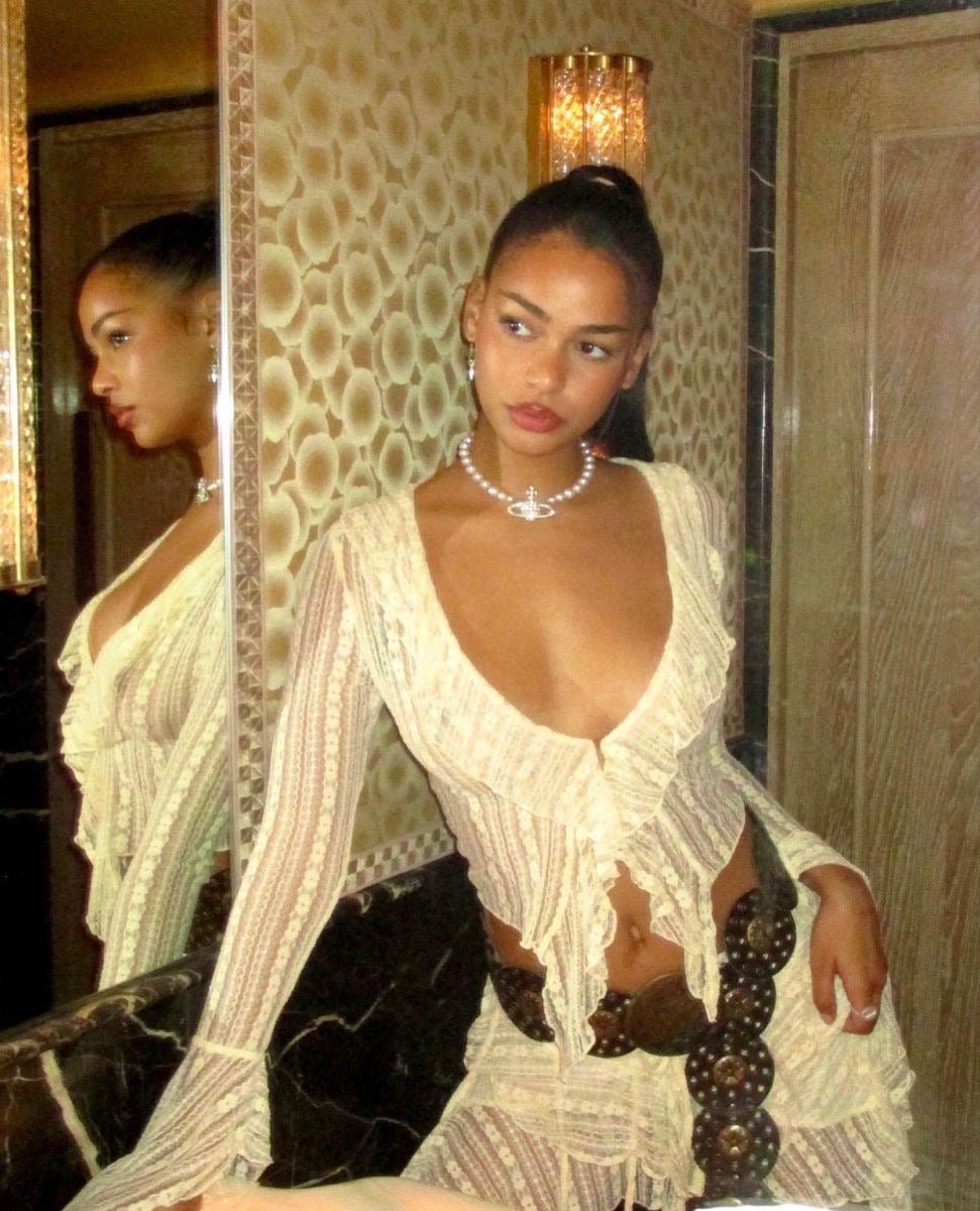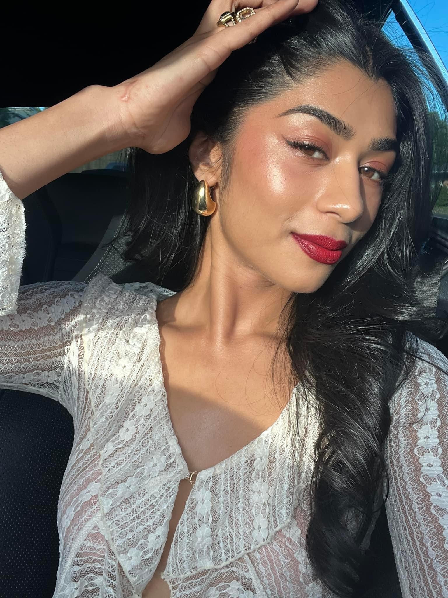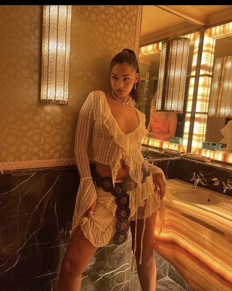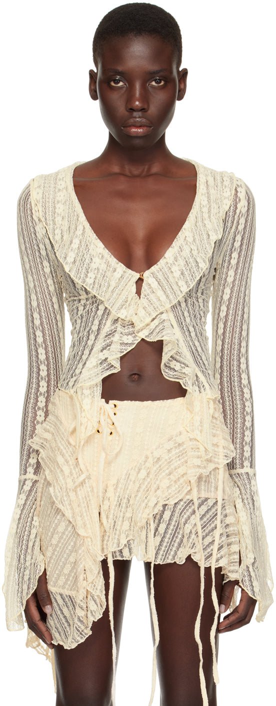 RAGA MALAK Beige lace top with front hook-and-eye closure