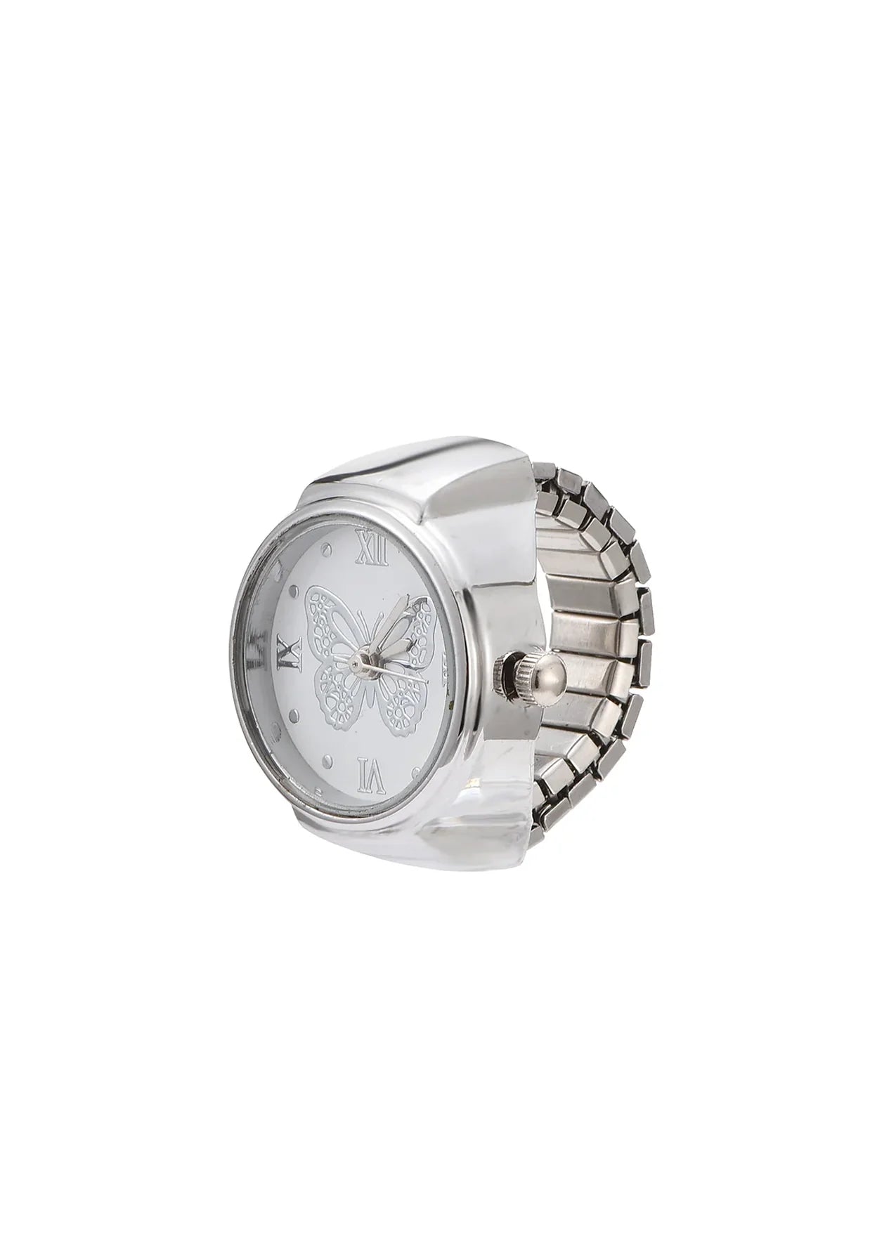 Introducing our Silver Butterfly Ring – where elegance meets utility. This season’s must-have statement piece features a delicate butterfly design with a hidden clock face, bringing a unique blend of charm and practicality to your ring game. Adjustable, eye-catching, and effortlessly cool—this one’s made to turn heads. ⏰🦋