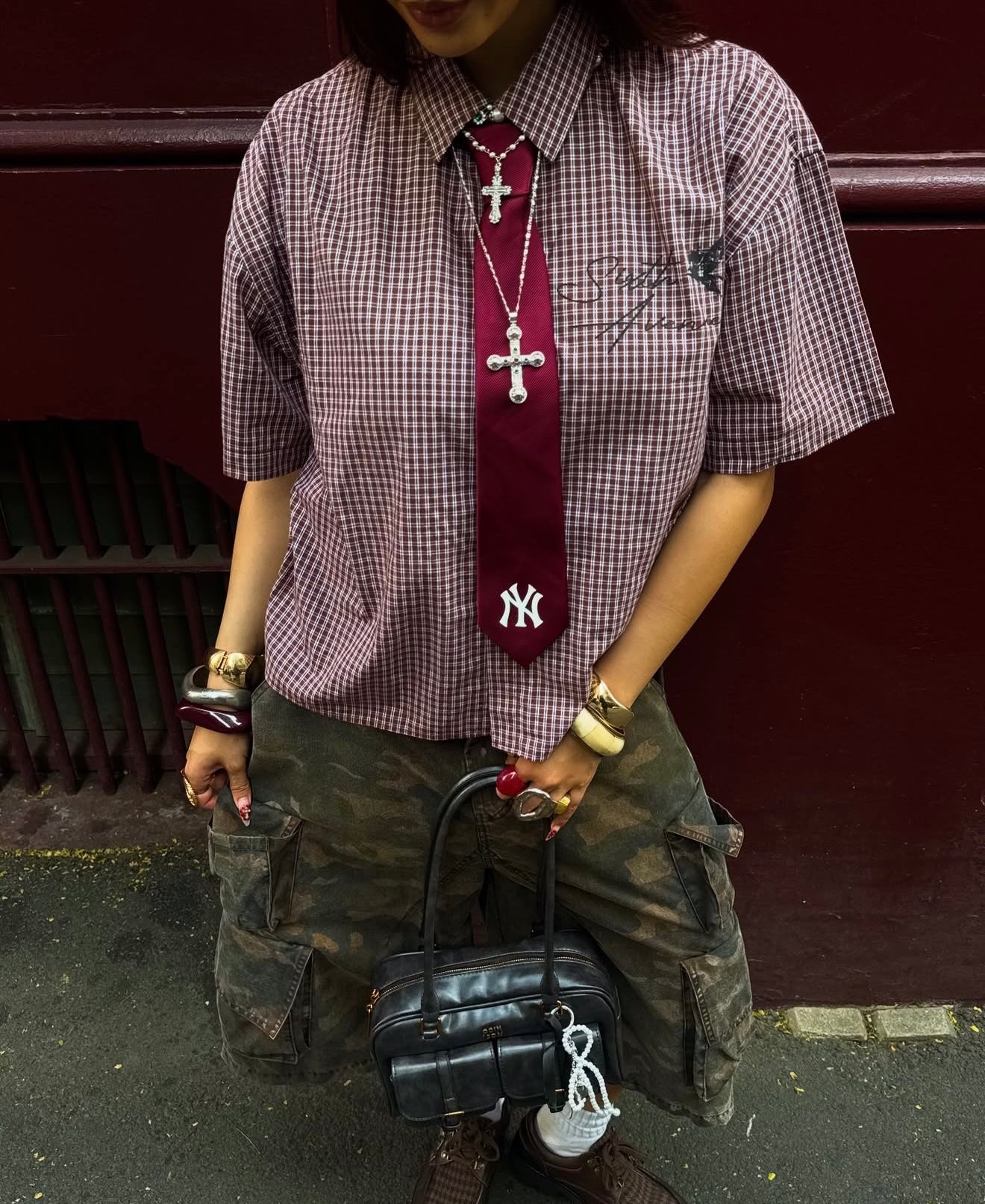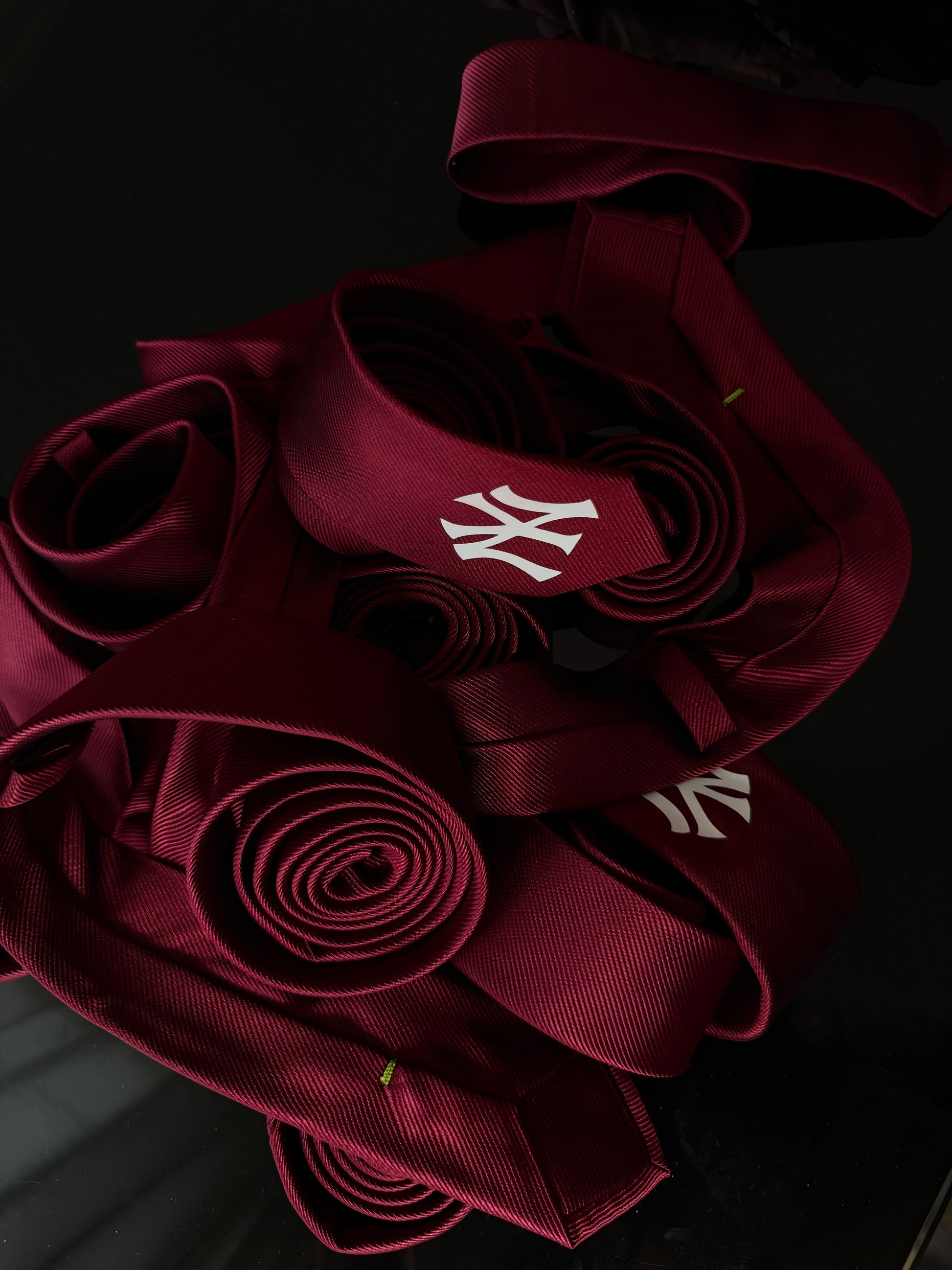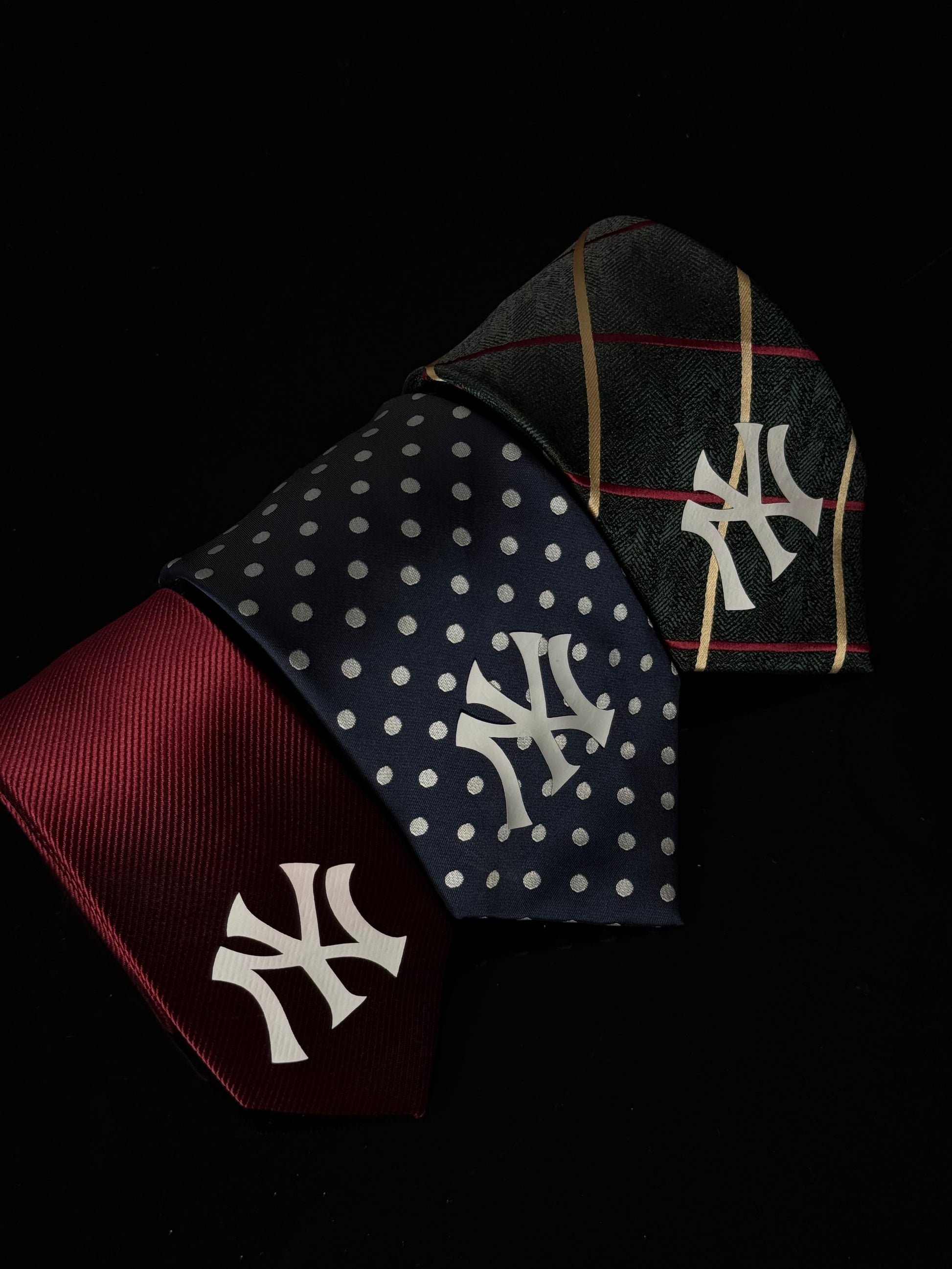 A limited-edition drop of vintage and handmade Yankee Ties, where office-core meets street edge with a nod to classic school uniform tones. Think navy, burgundy, emerald green – primary colours, reimagined with bold, elevated energy.