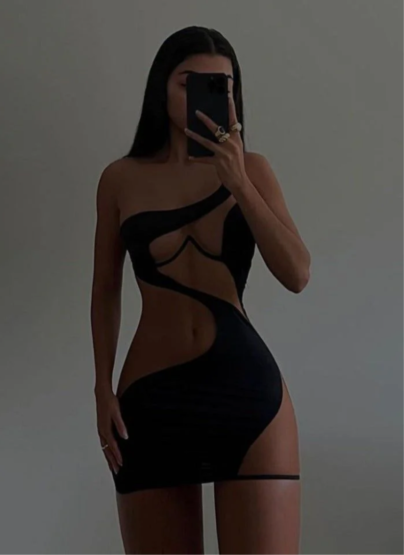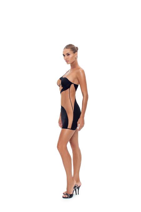One shoulder styling - Lightweight satin fabric with nude mesh paneling
