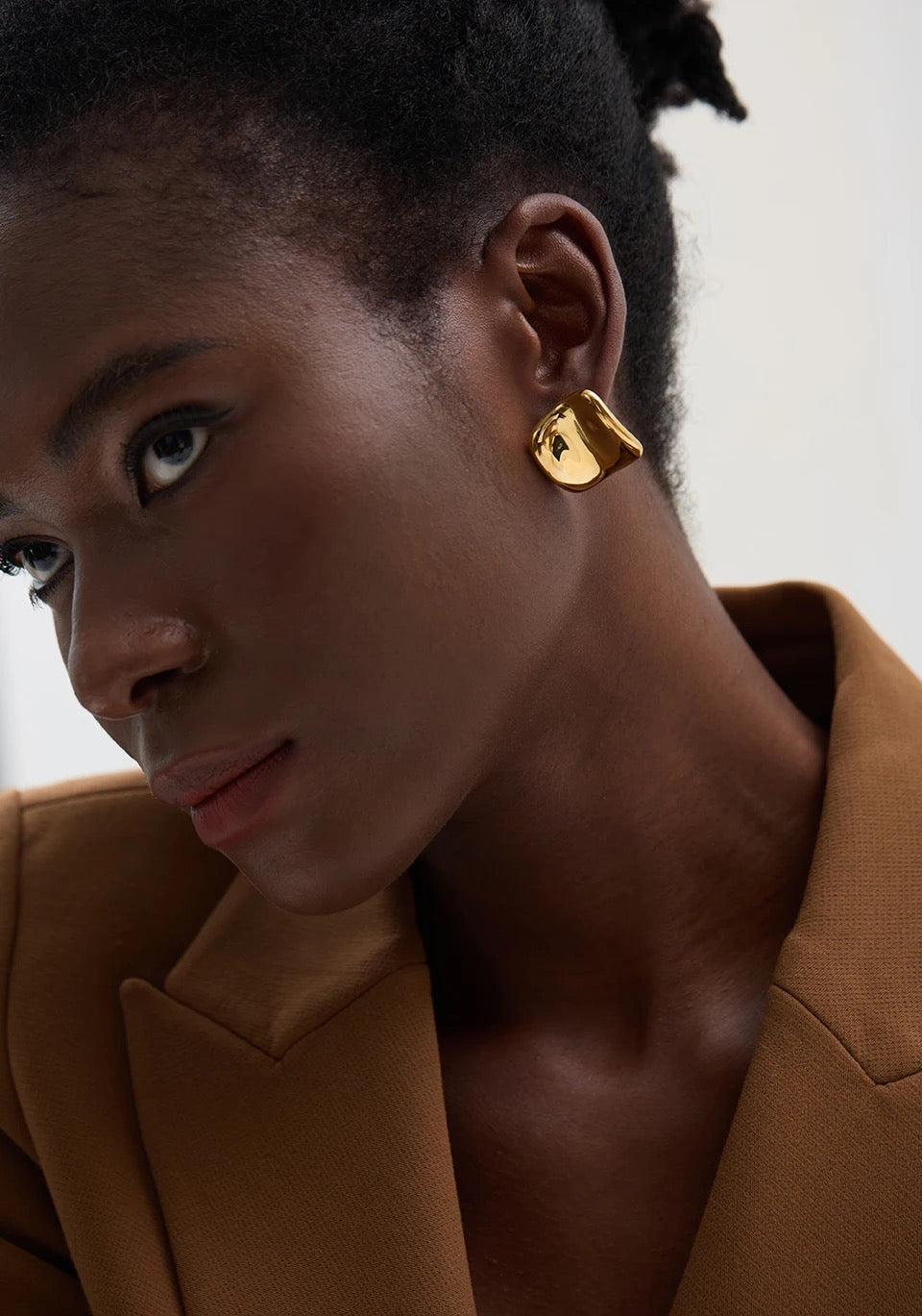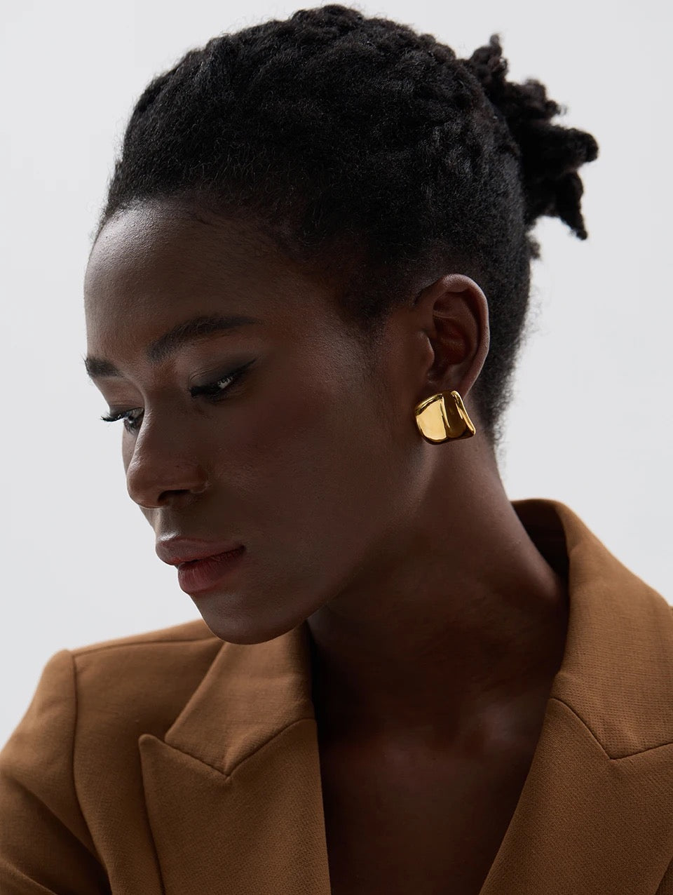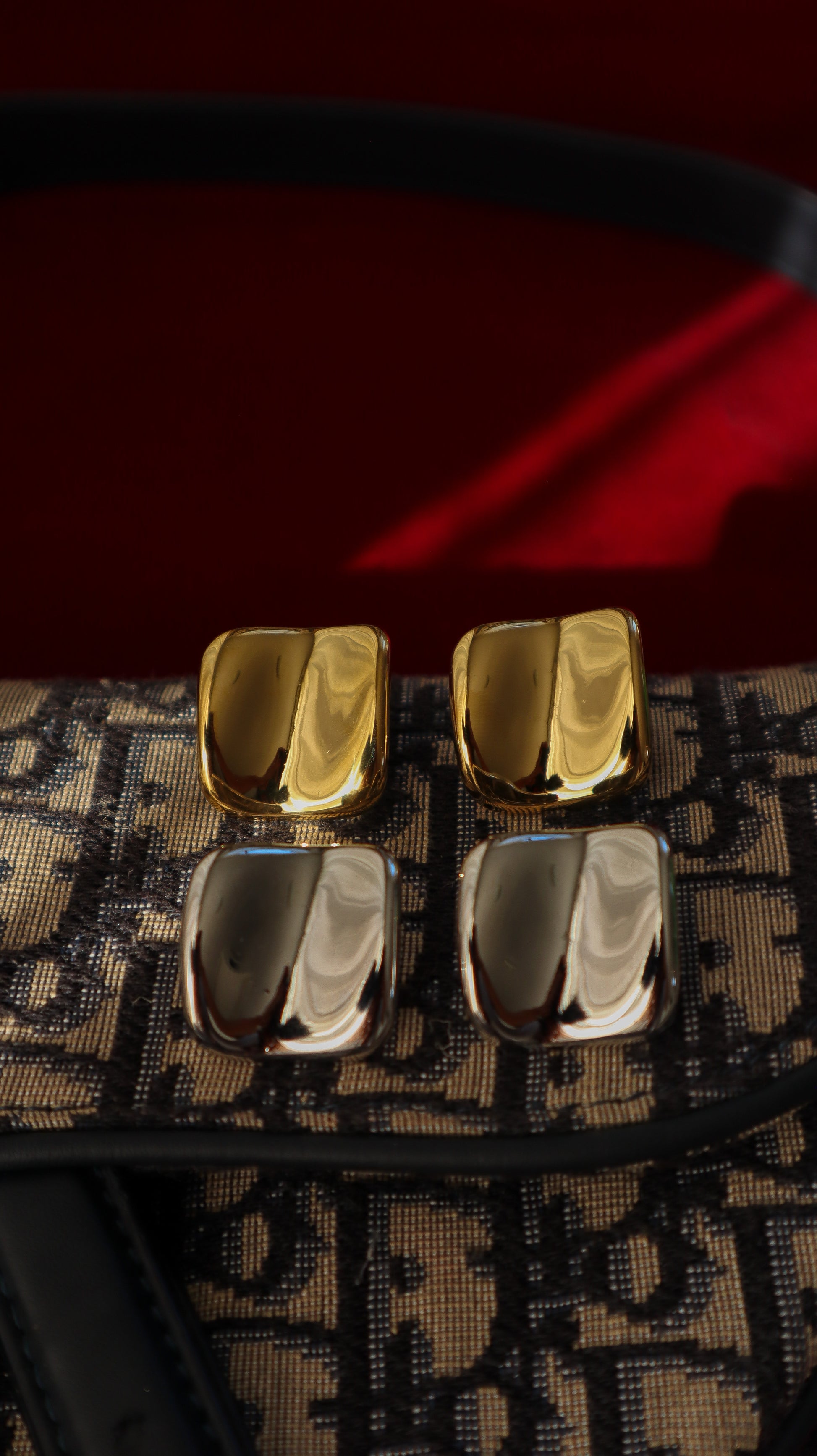 Elevate your style with the FOLD Earrings! These vintage square earrings have a twist - a gentle fold for added dimension. Made with 18k gold stainless steel, they're waterproof and tarnishproof. Look good, feel good, and be empowered. Perfect for day to night wear.