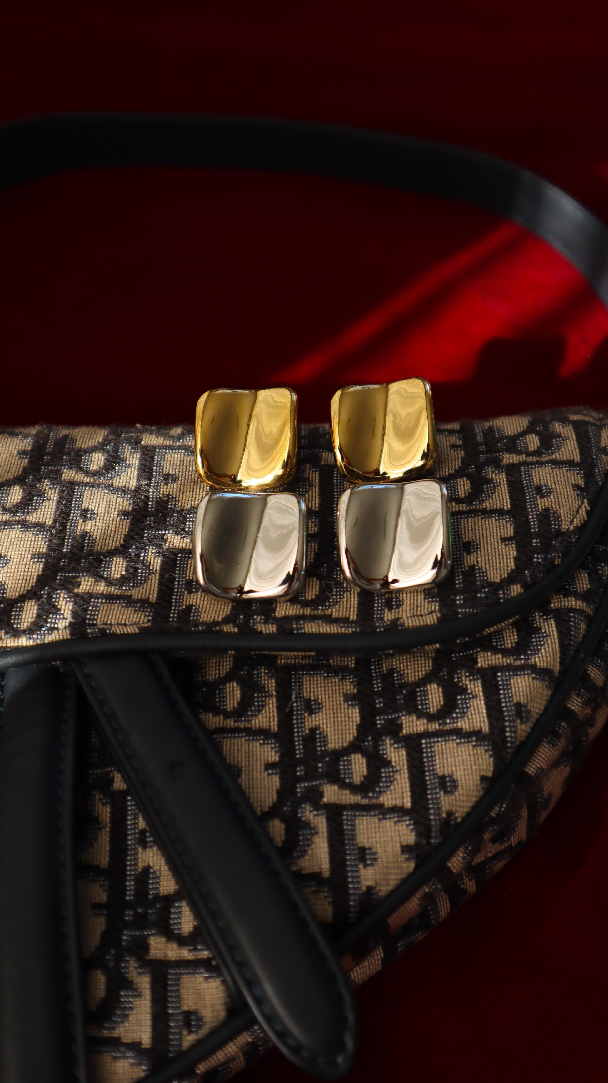 Elevate your style with the FOLD Earrings! These vintage square earrings have a twist - a gentle fold for added dimension. Made with Platinum Coated stainless steel, they're waterproof and tarnishproof. Look good, feel good, and be empowered. Perfect for day to night wear.
