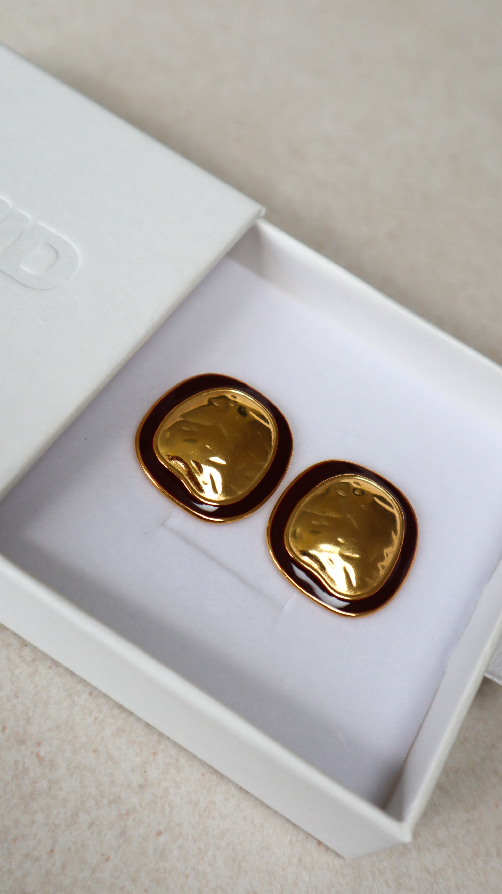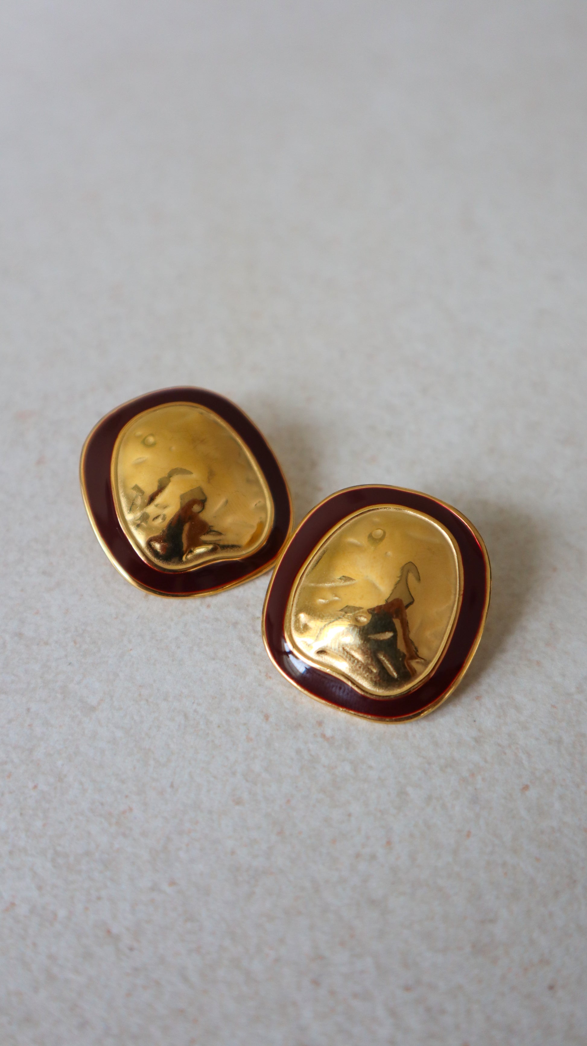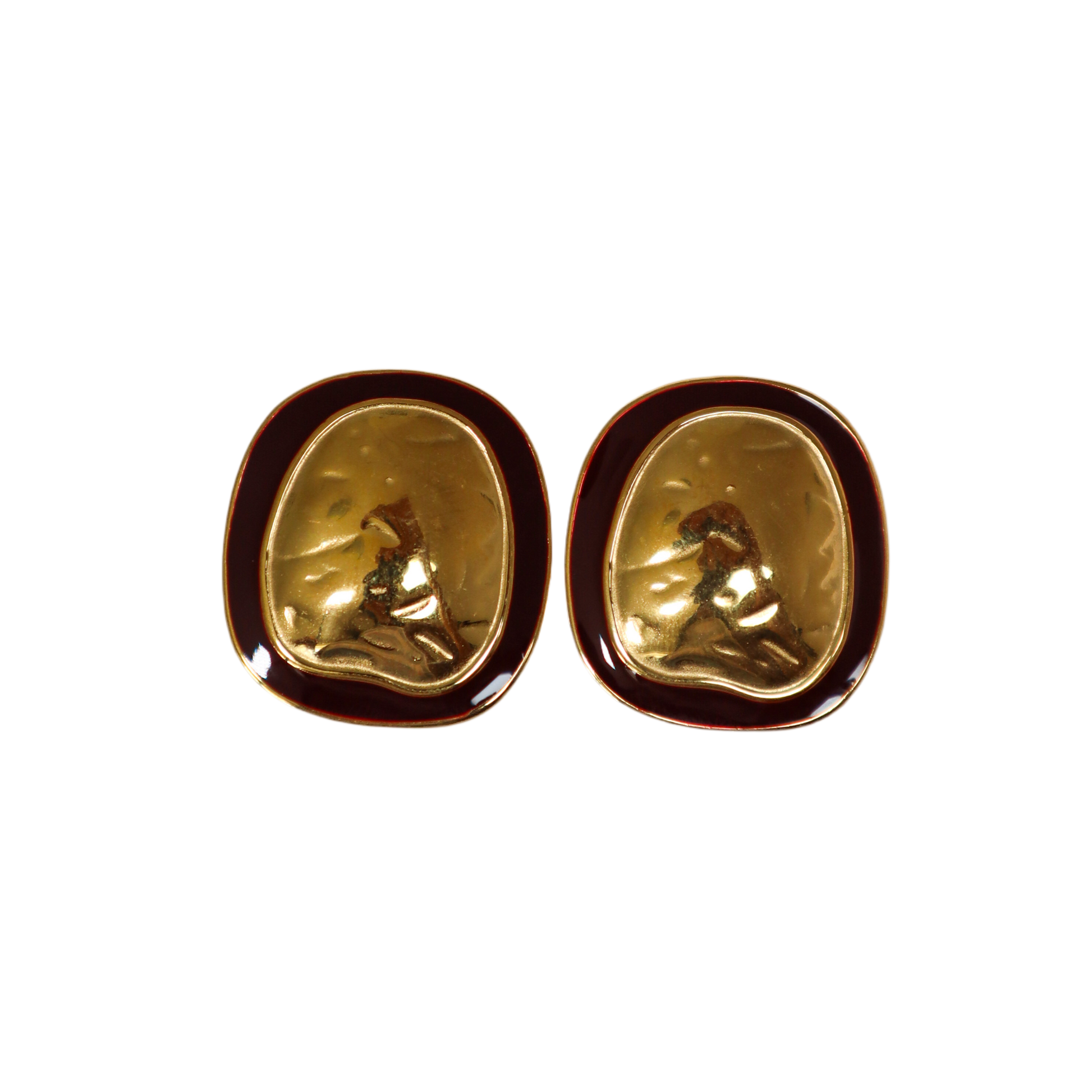 Upgrade your earring game with our Halo Earrings in Gold! These eye-catching accessories feature a textured oval shape with a chic burgundy border, perfect for making a statement. Available in both silver and gold, these earrings are the ultimate addition to your jewelry collection.