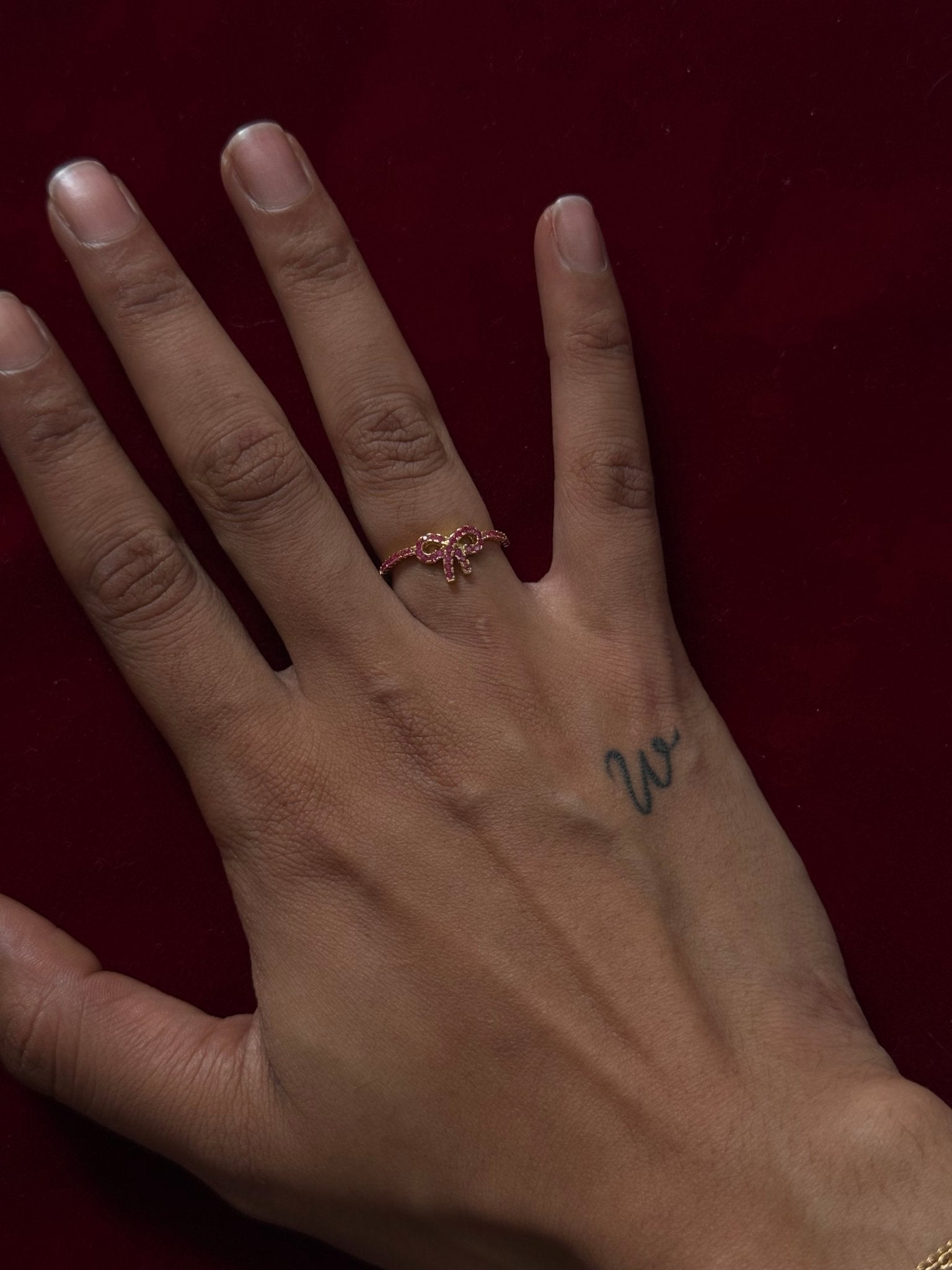 The Infinity Bow Ring features a stunning pink sapphire zirconenstone encrusted in 18k gold plated stainless steel in a delicate bow shape. Made to last with waterproof and tarnishproof properties, it is the perfect choice for a Valentine's Day gift. This ring is designed to last forever…♾️