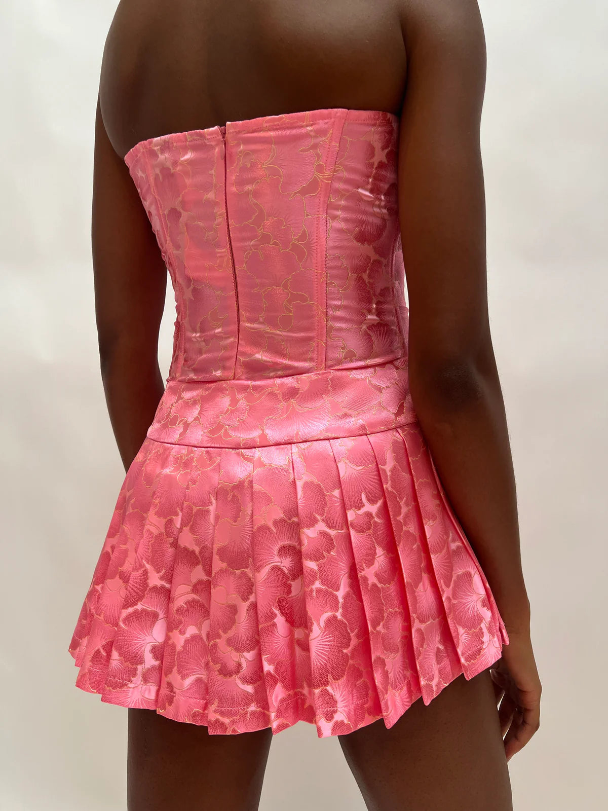 Corset is by New York designer, KIM SHUI. Rayon and silk-blend brocade bustier-style camisole. Jacquard pattern and boning throughout.