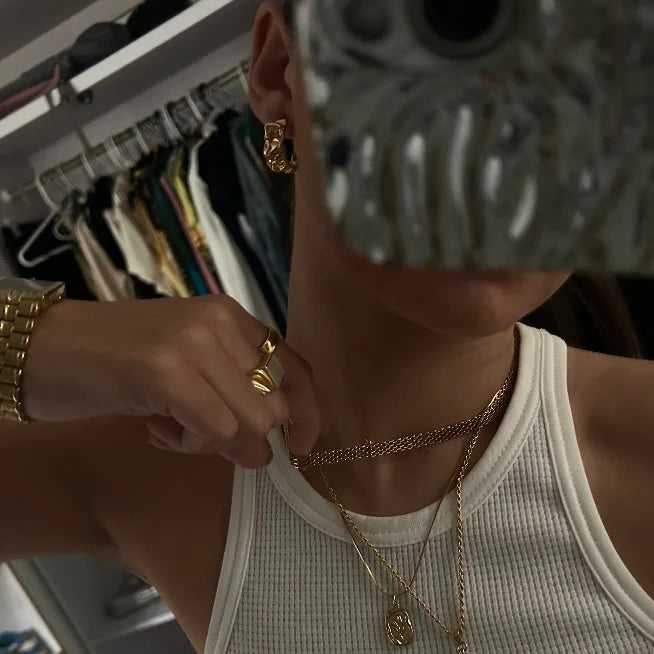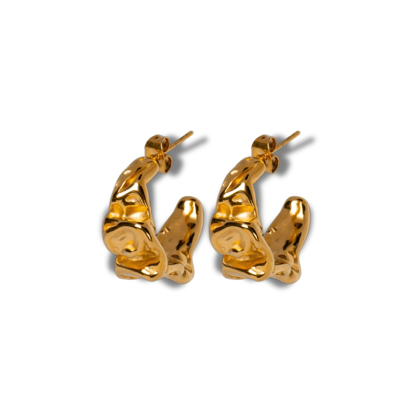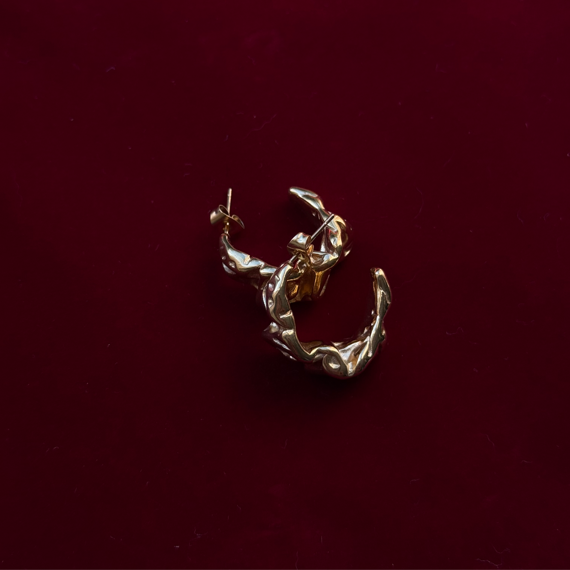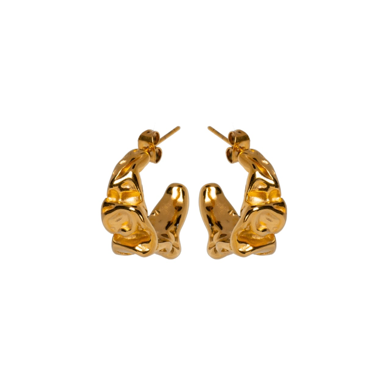 Elevate your everyday look with our Melted Gold Hoop earrings. The timeless antique 18K gold finish, resembling 24K gold, reflects light beautifully for a radiant glow. Made with stainless steel, it's both waterproof and tarnish-proof. Perfect for the romantics who appreciate quality and style.