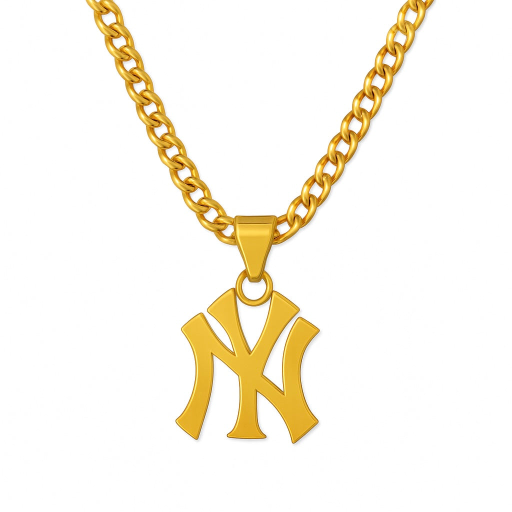 Introducing our long awaited NY YANKEE NECKLACE! Made with high-quality 18K Coated stainless steel, this chain won't tarnish or rust, lasting you a lifetime. Make a statement or layer and stack for the perfect look. Comes with a Tarnish-Proof Figaro Chain! (Hope you didn't "foul" there, this necklace will "hit it out of the park"!👌)