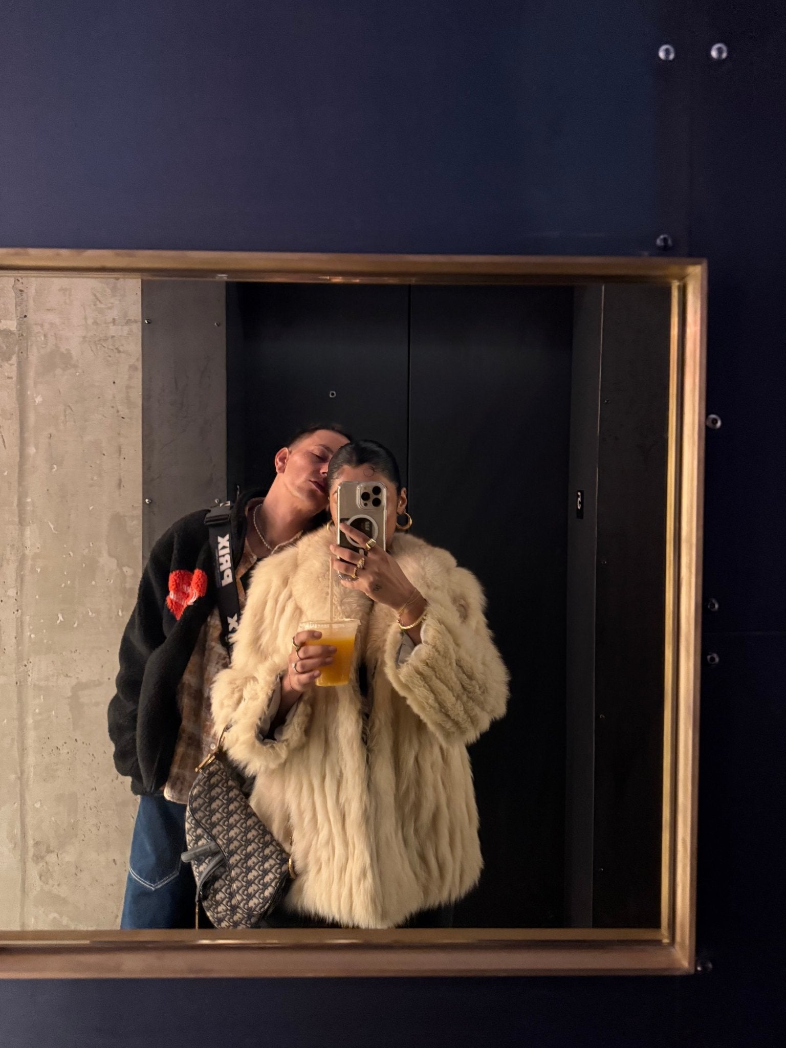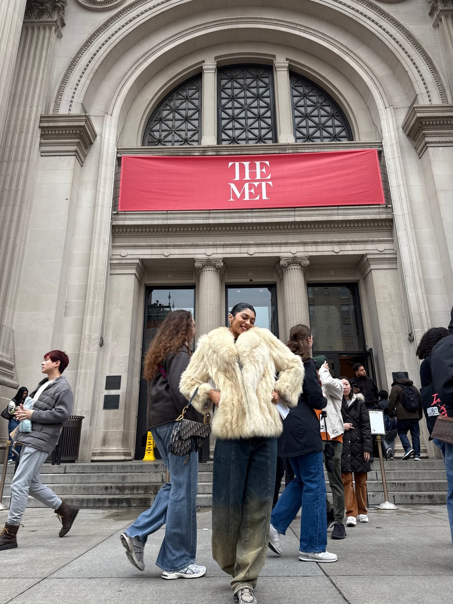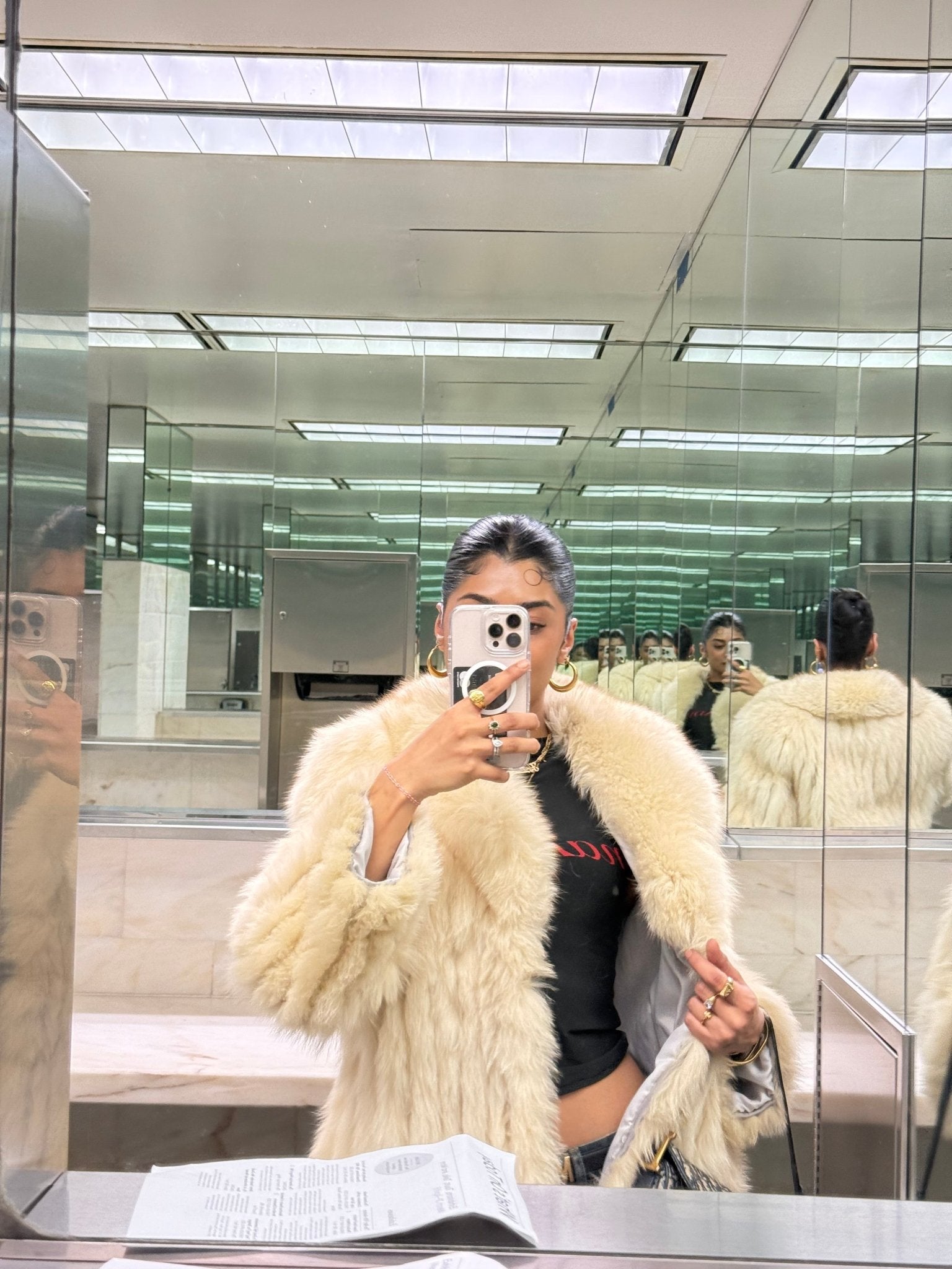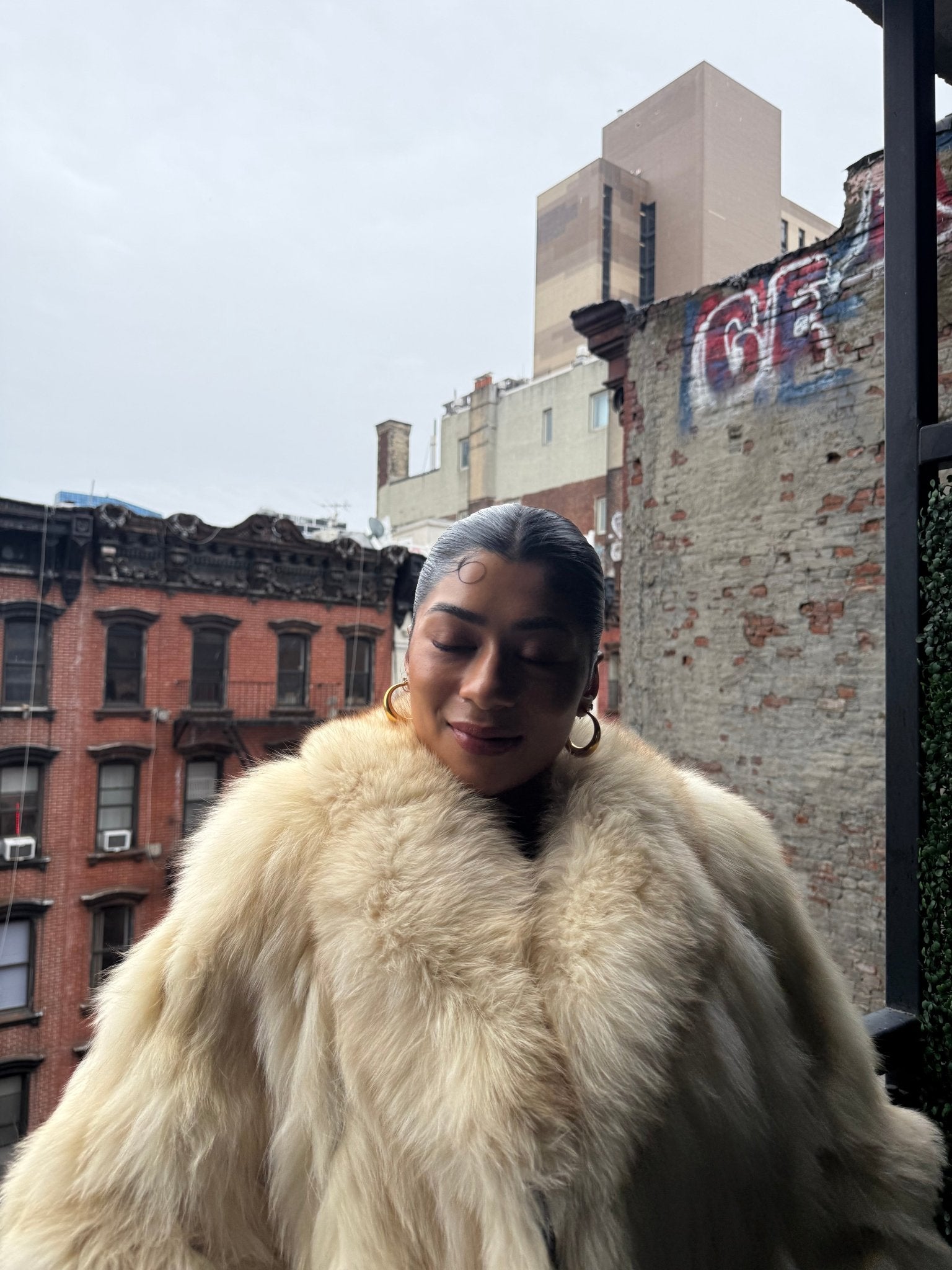 Straight from the heart of New York City’s Lower East Side, this cream faux fur jacket is the ultimate statement in sophistication. With its longer silhouette, soft luxurious texture, and chic fur-trimmed hood, it effortlessly combines vintage charm with modern edge. Designed in a flattering, slightly oversized fit, it’s perfect for layering on cooler days.