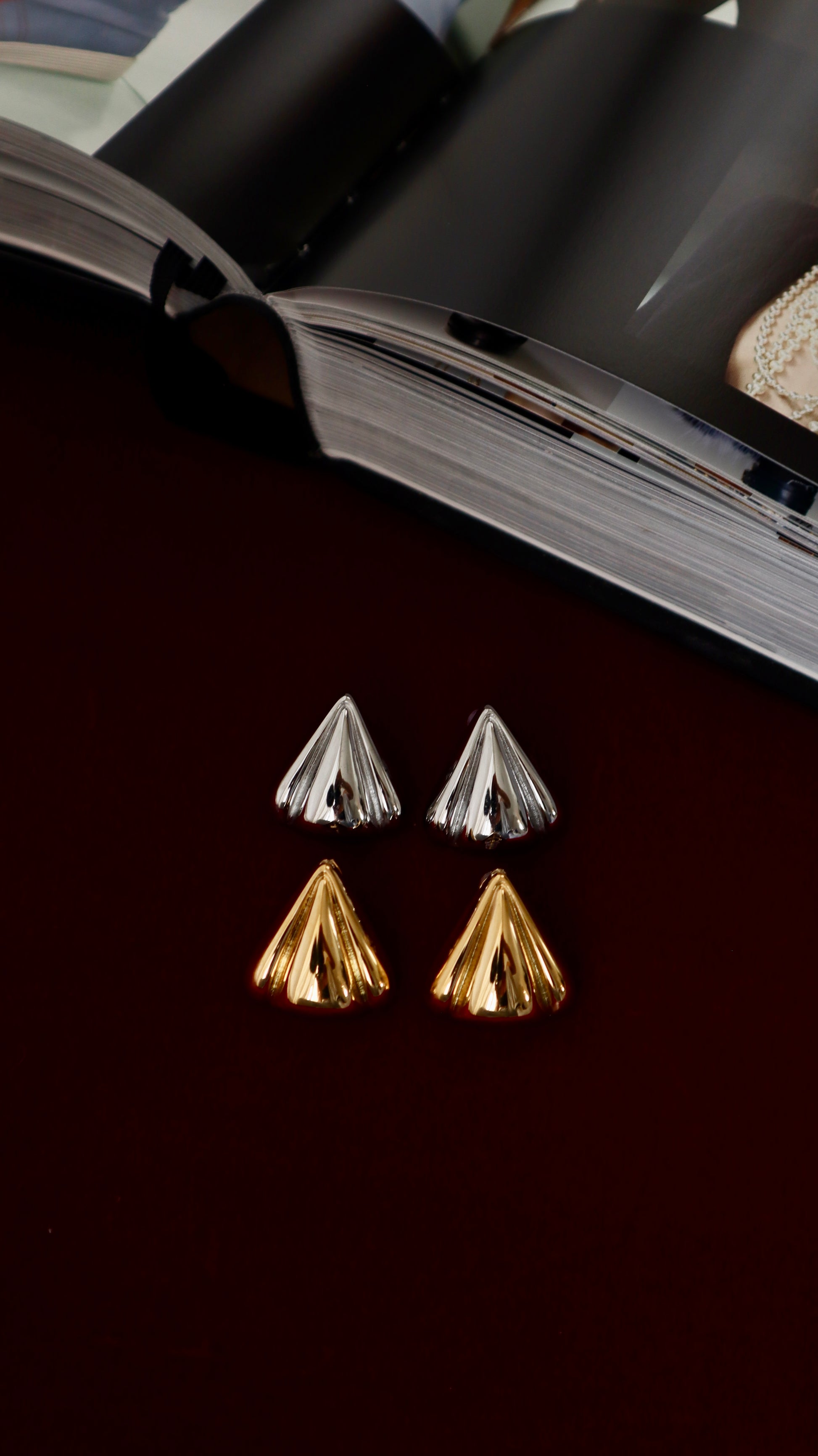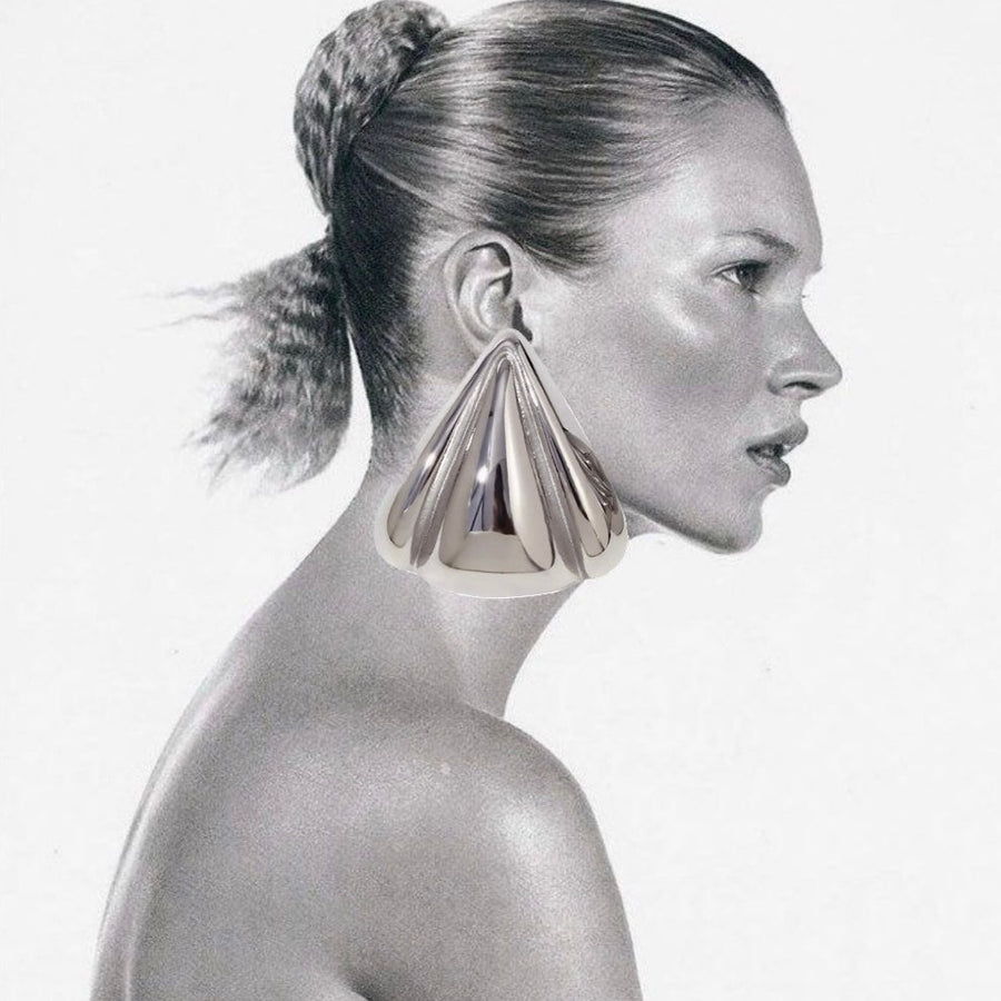 Our earrings have a modern twist on a classic vintage design. Taking inspiration from the iconic shapes of the 80's and 90's, our bold statement pieces can easily transition from everyday wear to special occasions. Coated in a beautiful platinum silver vermeil coating on a stainless steel base, making them completely Water-proof & Tarnish-proof