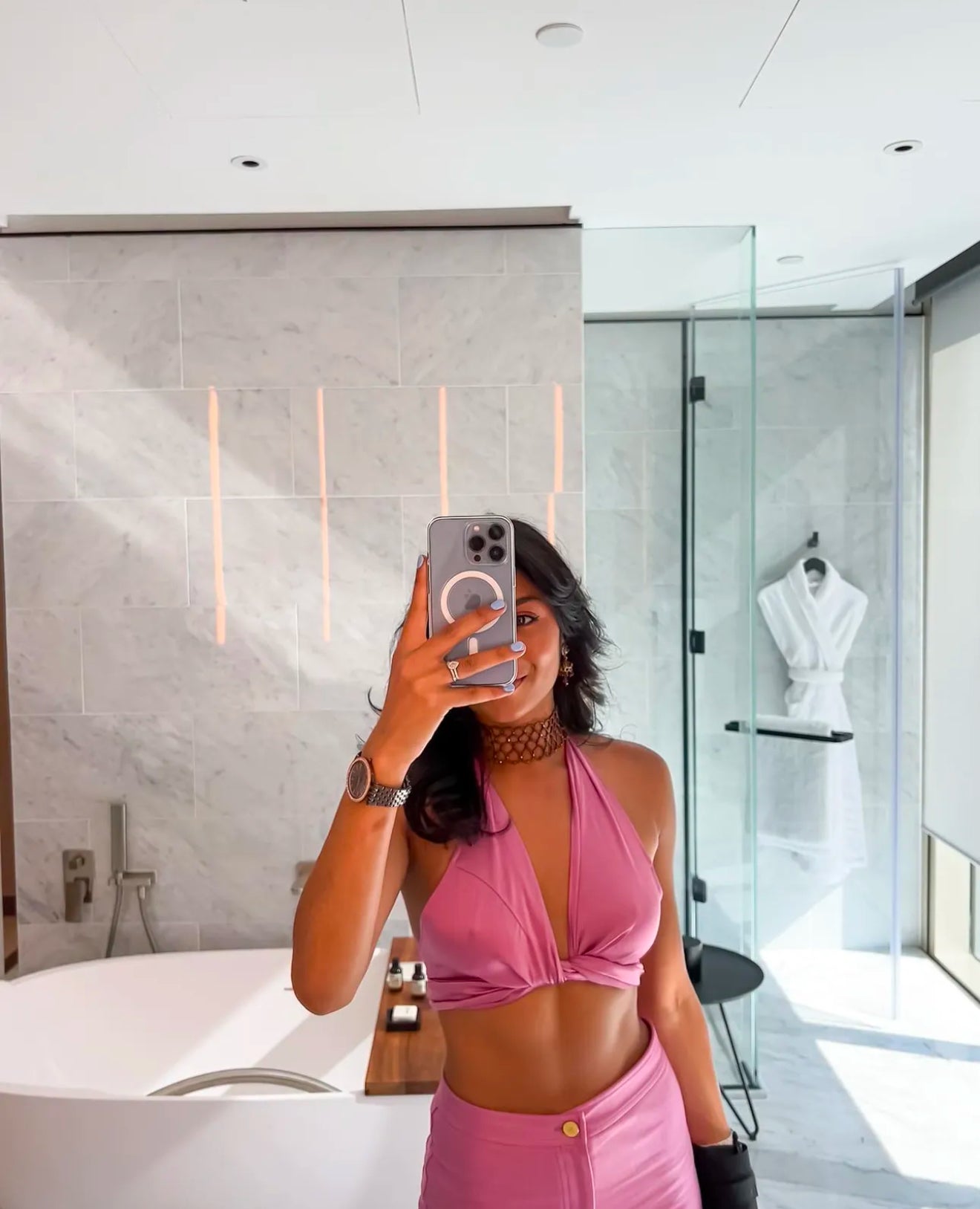 Set Includes REZEK STUDIO Blush Donna Halter & Hustle Pant