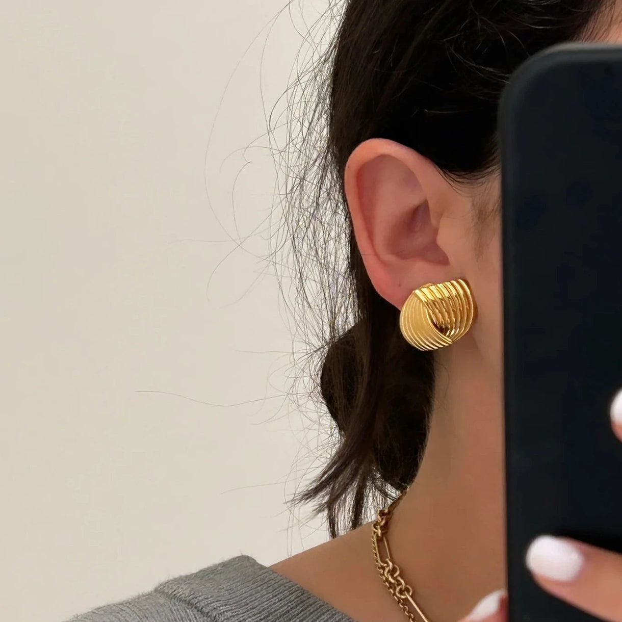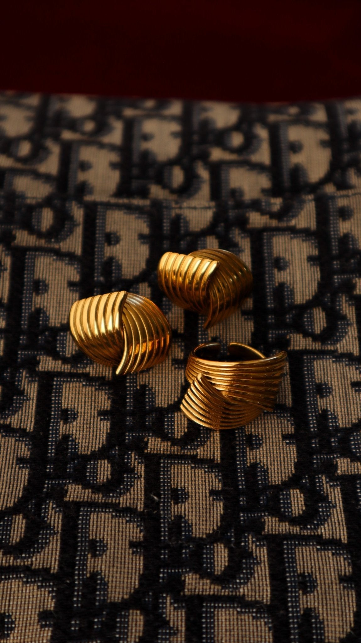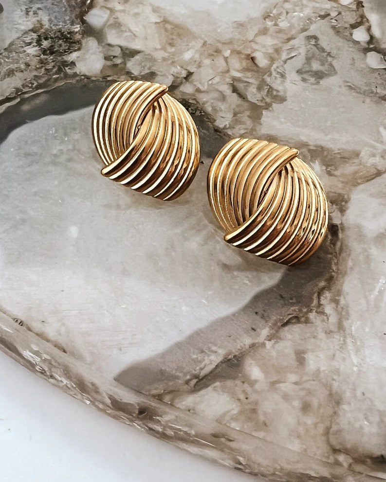 Introducing our chic "Slick" earrings in 18k gold vermeil (reflects more like a vintage 24k gold). Elegant ribbed wrap design with a stainless steel base, making them waterproof and tarnish-proof. Elevate your style and add a touch of sophistication with these stylish earrings. Don't forget to complete the look with the matching Slick ring!
