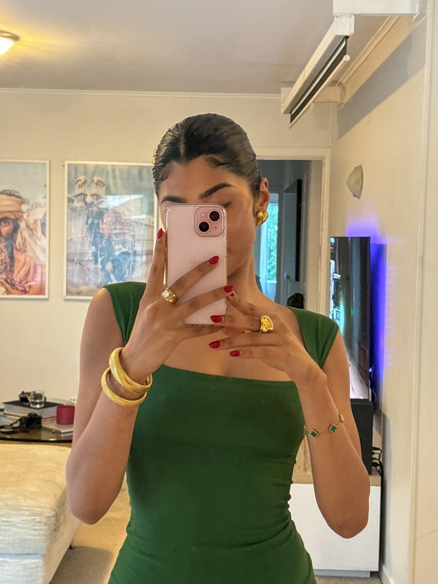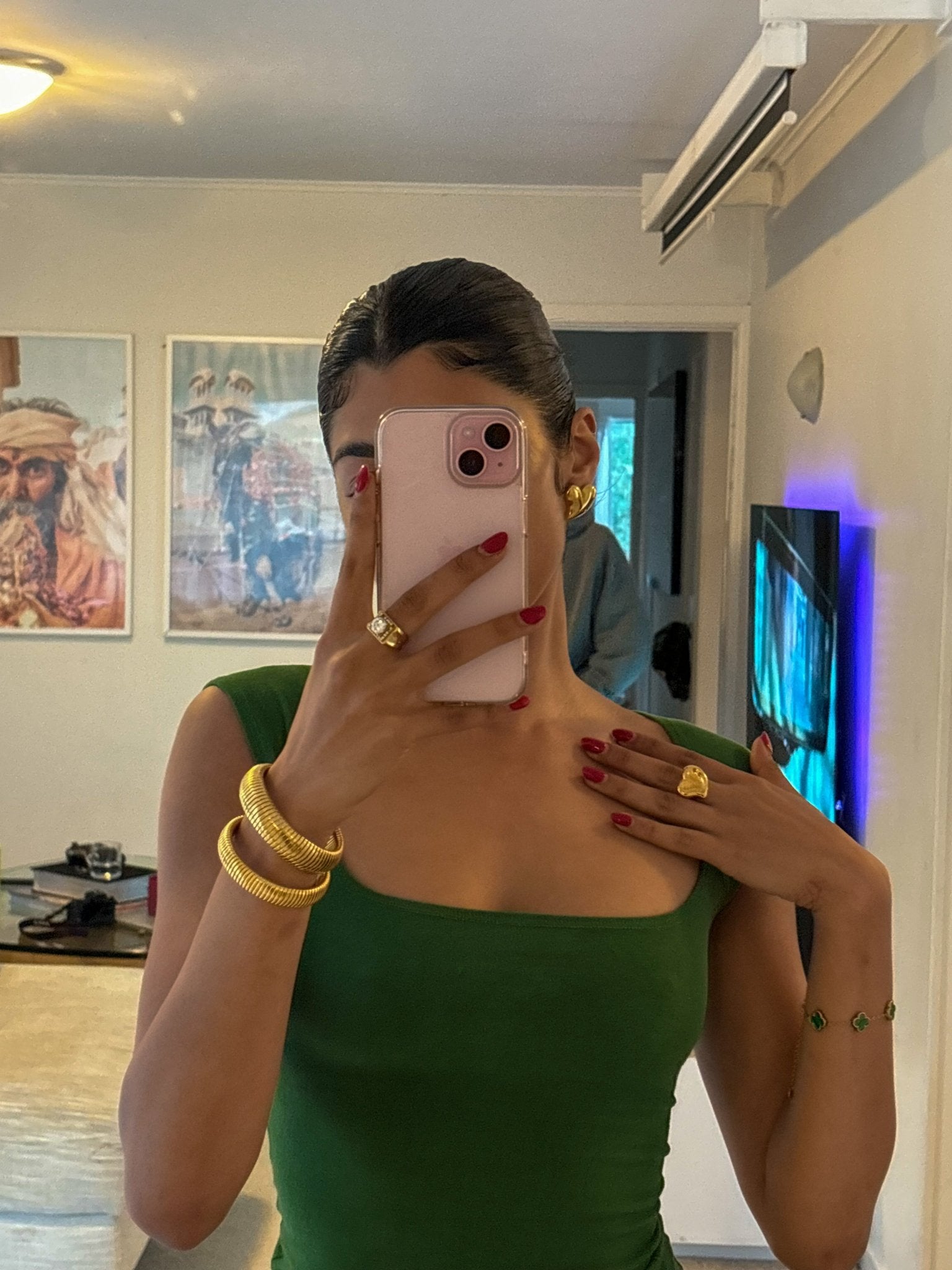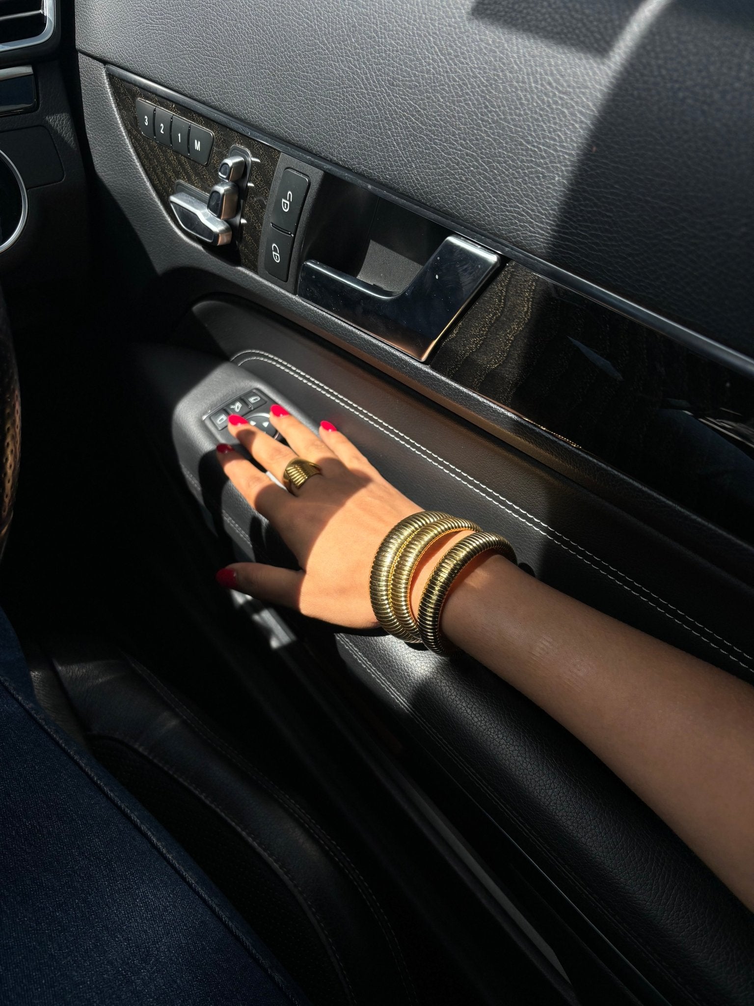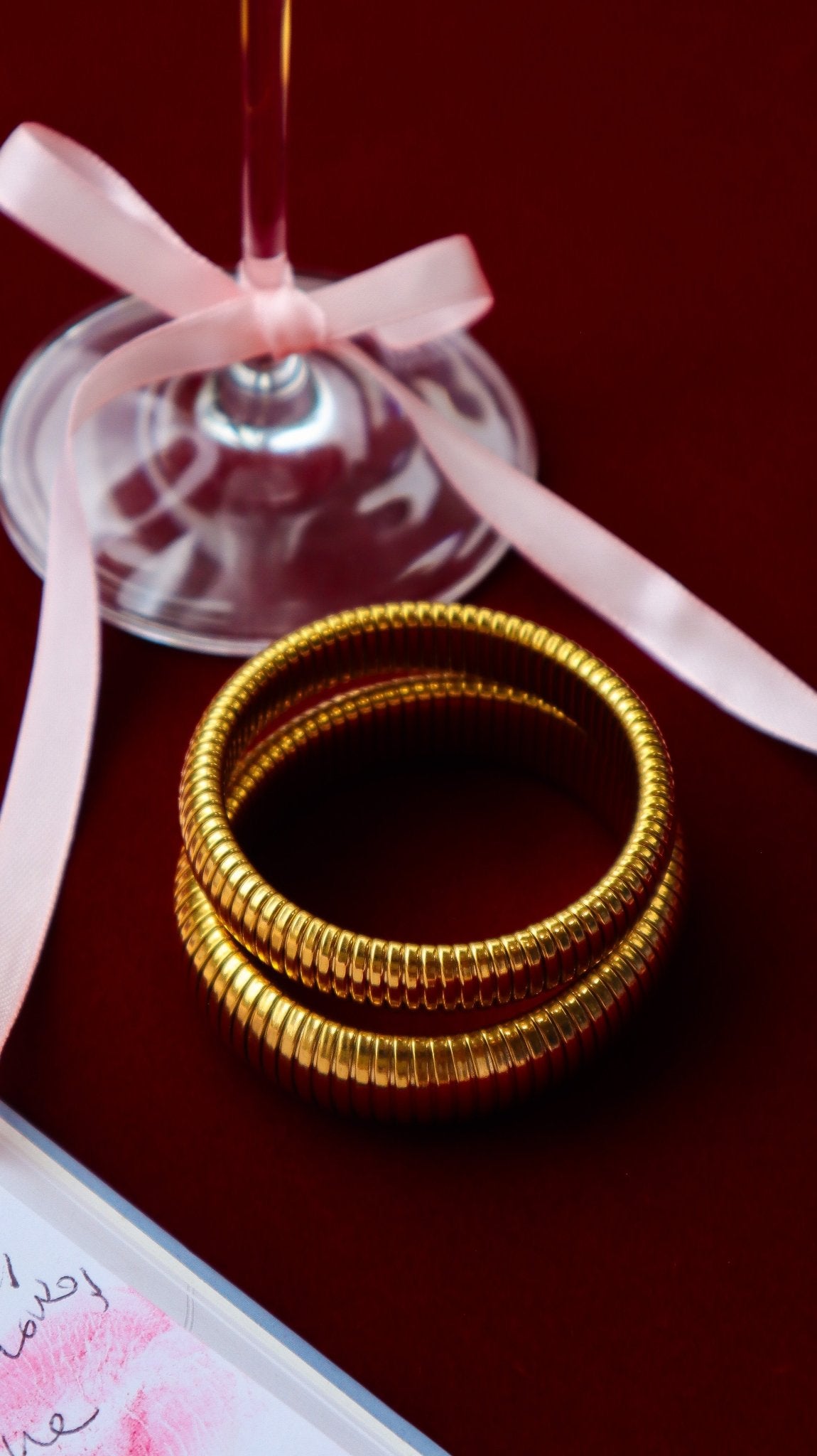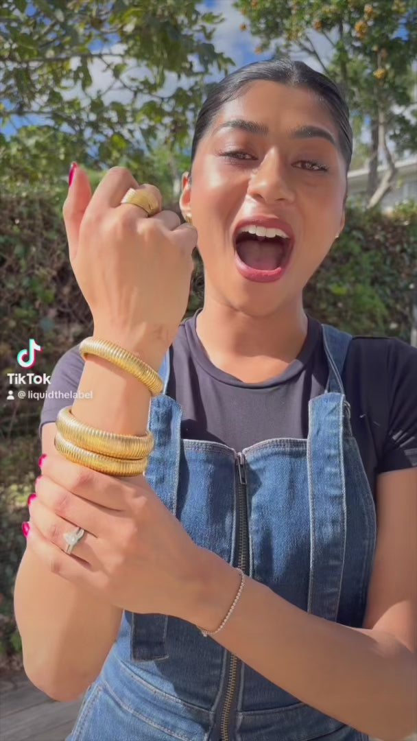 Add a touch of whimsy to your style with our Cleopatra Bangles. Whether paired with other bracelets or worn solo, this versatile piece is sure to complement any outfit. The stretchy spring mechanism allows for the perfect fit (fits all sizes!), while the high quality 18K Gold Vermeil coating adds a beautiful shine. Perfect for work, day drinks, or a date night LBD. Glow with our newest addition!