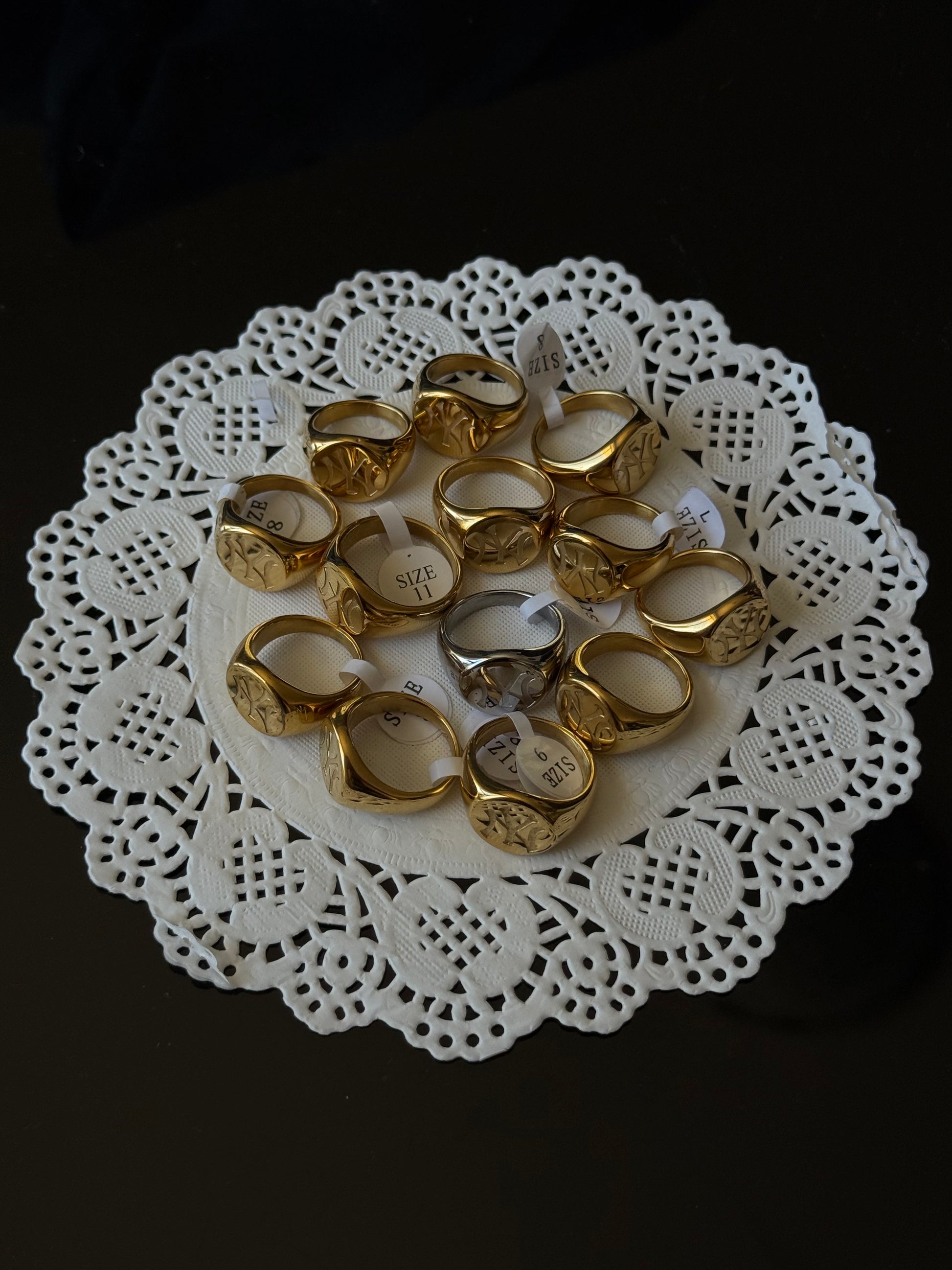 All of these rings are completely waterproof and tarnish-proof. However, some pieces may have minor surface scratches from the electroforming machine. Most of these can be polished out, though a few may not be fully removable.
