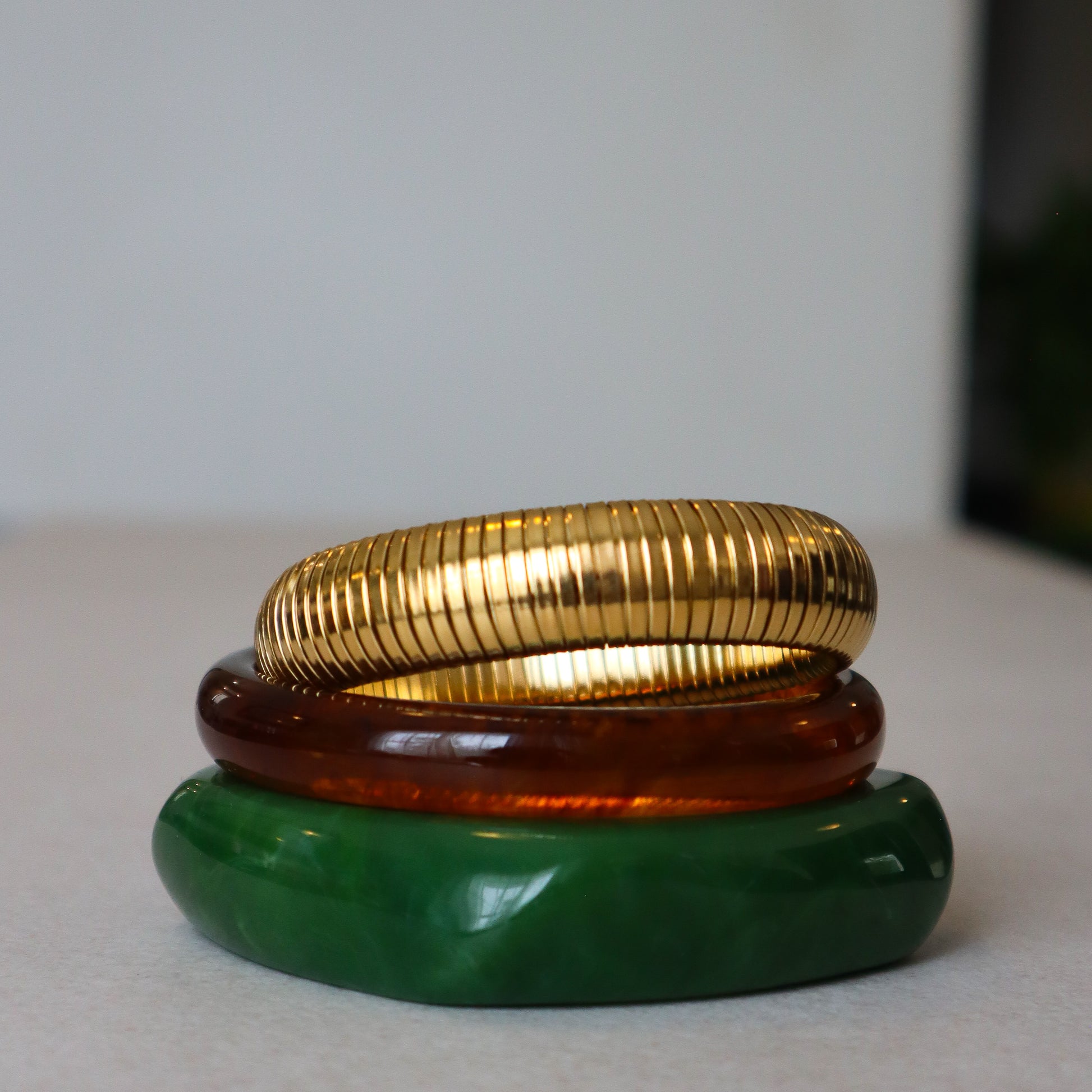 Get ready to stack in style with our THIN JELLY BANGLE! Made with high-quality acrylic, this waterproof and tarnish-free bracelet is a must-have for your next vacation. Mix and match with our Thin Stackable Bangle Set for an iconic look. Take your bangle game to a whole new level!