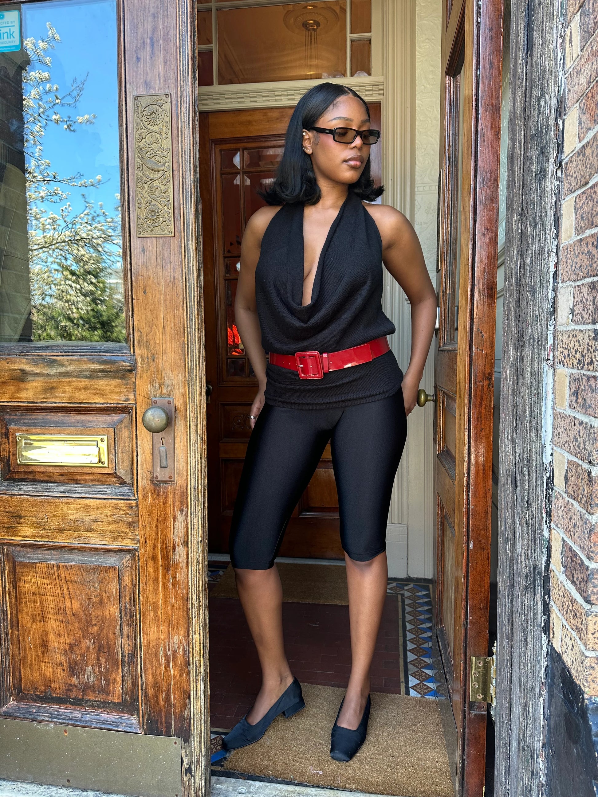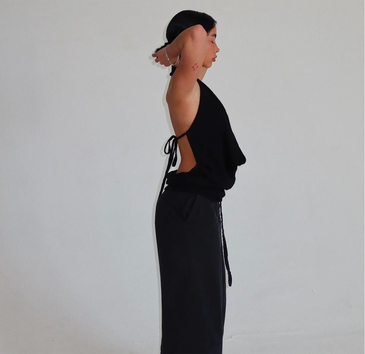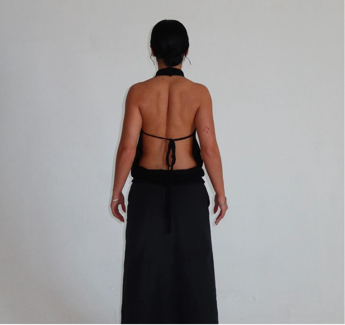 Our Toula Top is perfect for summer and tropical vacations. She is light and airy with a dainty look. Our Toula Top is a halter neck with a draping middle and adjustable ties on the back so you can choose how much coverage you want.