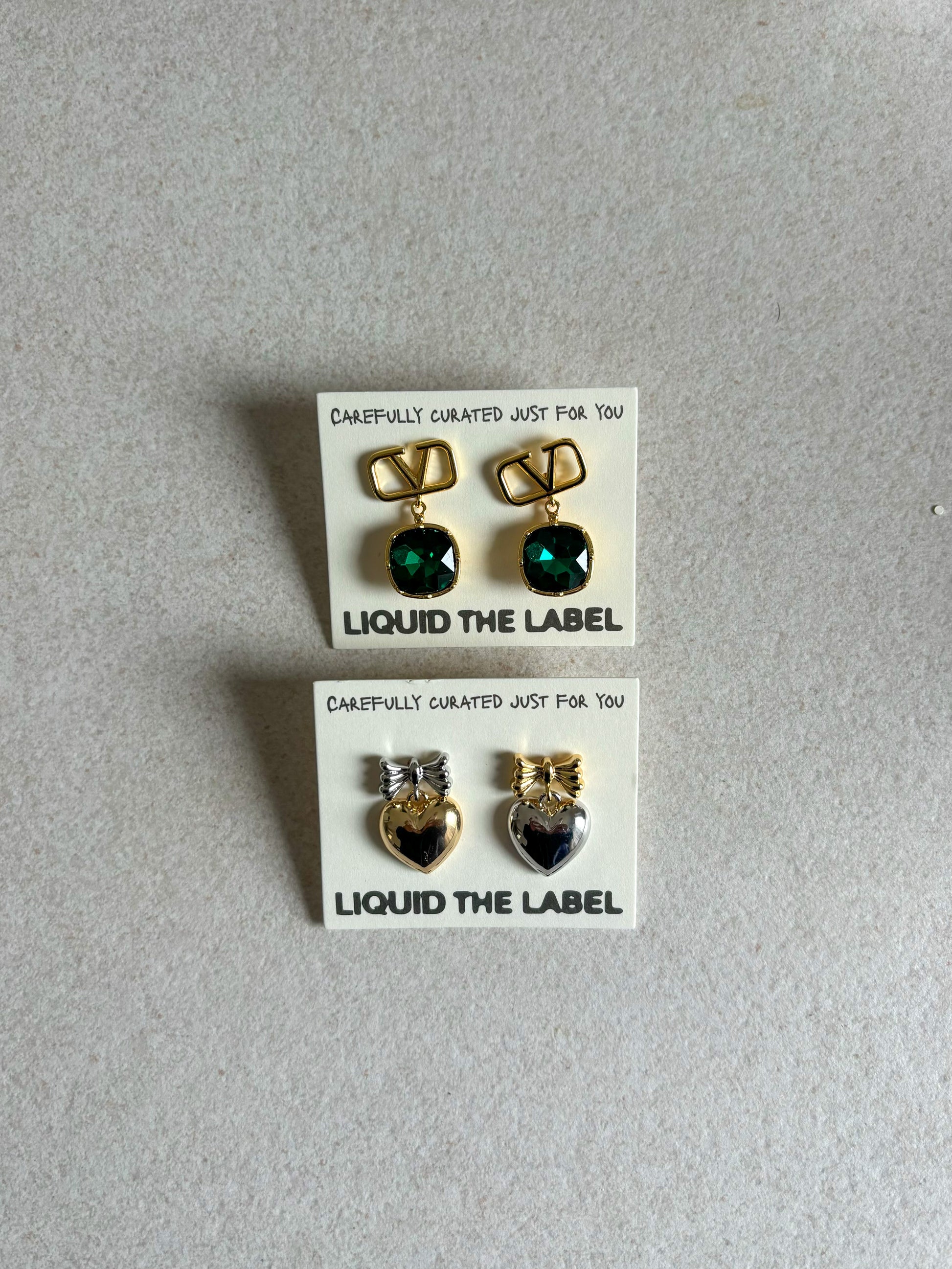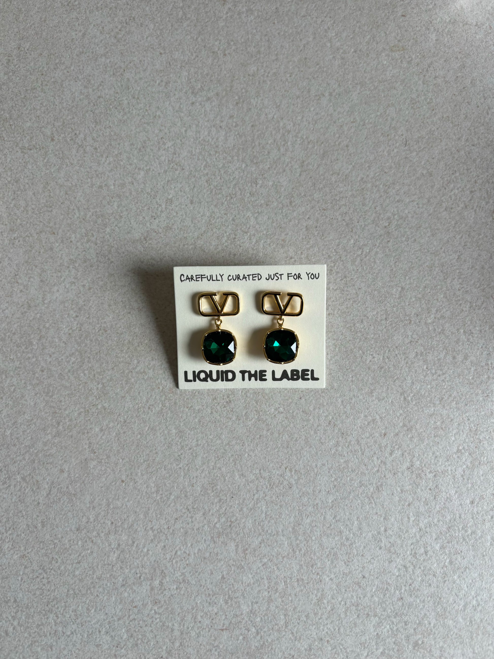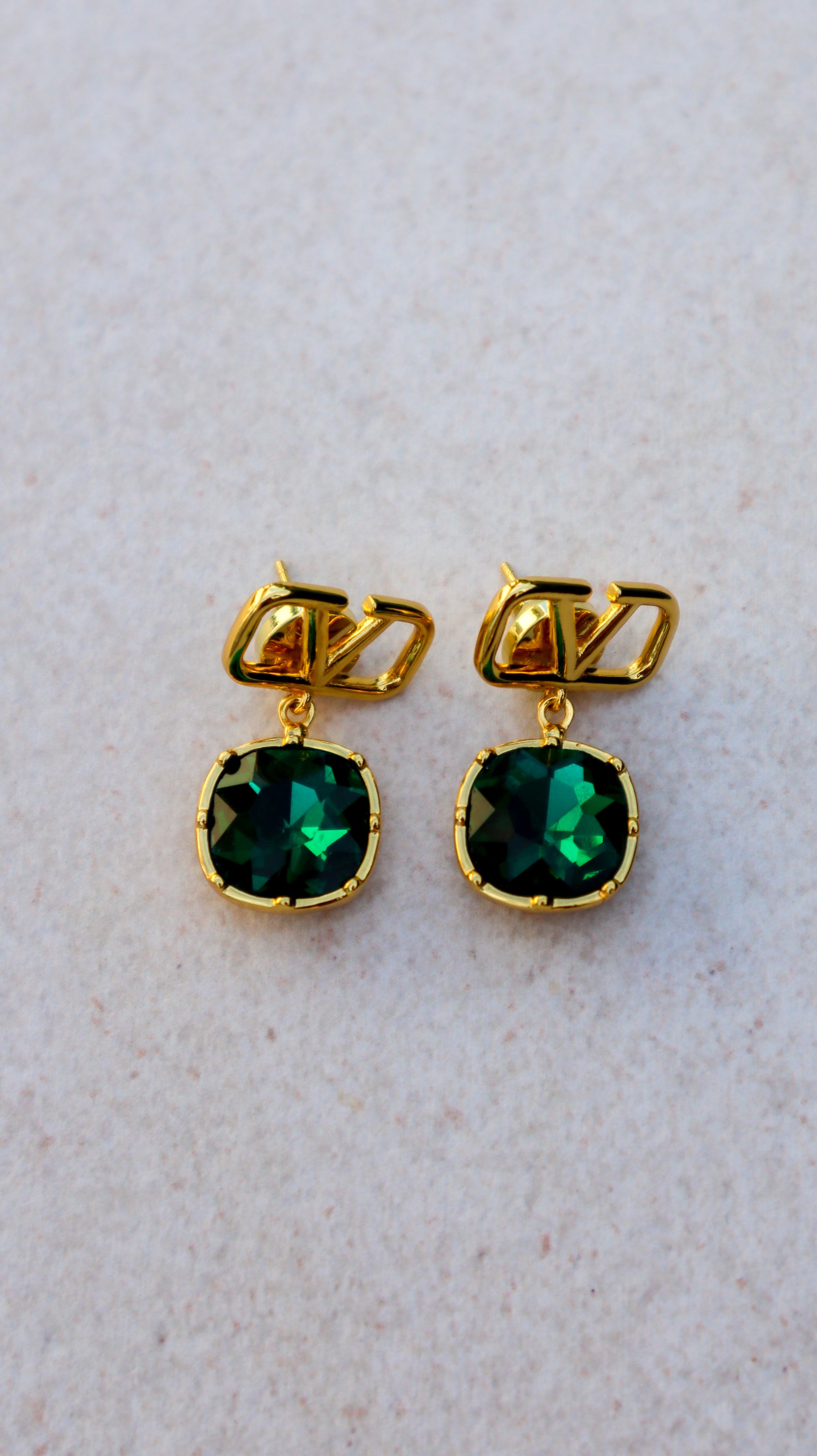Elevate your style with our Valentino Emerald Drop Earring's! Featuring a stunning emerald green stone in a drop setting, these 18K gold plated earrings are the perfect statement piece for day or night. Inspired by the iconic Valentino design, these earrings will add a touch of glamour to any outfit