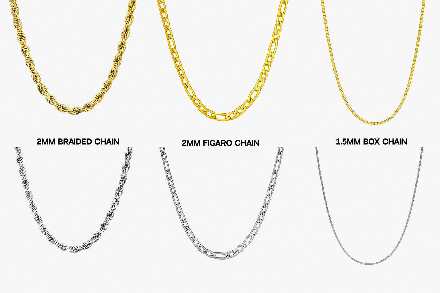 Available in rich 18k gold or polished silver, this beauty is completely customisable. Choose your chain — braided, Figaro, or delicate thin link — to match your personal style and mood. Whether you’re styling it solo for a sleek statement or stacking it with your go-to layers, this piece is destined to become a capsule collection favourite.
