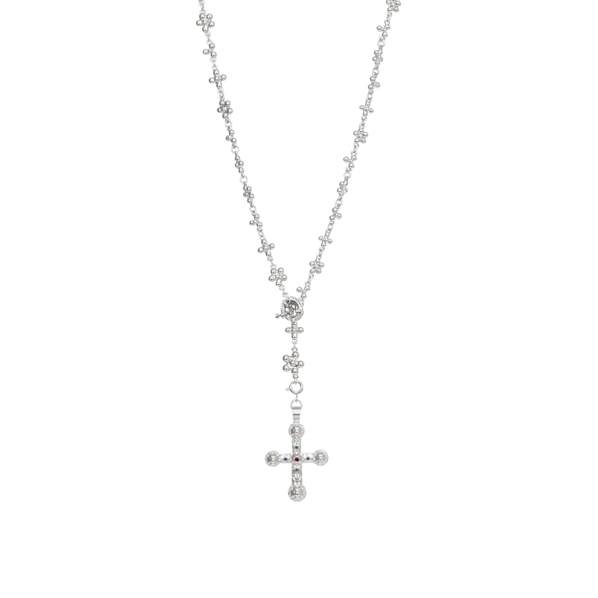 Discover the Vintage Rosary Chain—where elegance meets edge. This silver-toned necklace blends romantic and urban elements, featuring a delicate daisy and cross pendant for a bold yet timeless touch. Crafted from premium materials and adorned with a dazzling CZ stone, it’s designed with an adjustable clasp for versatile styling. The perfect statement piece to elevate any look.