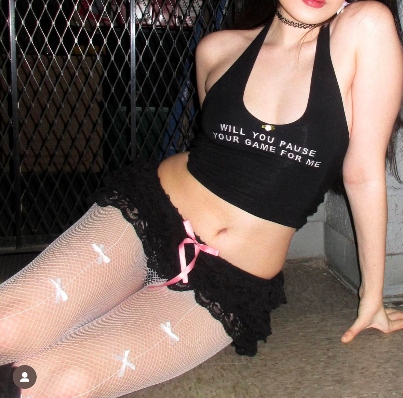 SIGNATURE OMIGHTY POINTELLE TOP FEATURING LETTUCE HEMS AND SEWN ON SATIN BOW. WEAR IT AS A REGULAR TANK TOP OR OFF YOUR SHOULDER 4 A LIL MORE ROMANCE